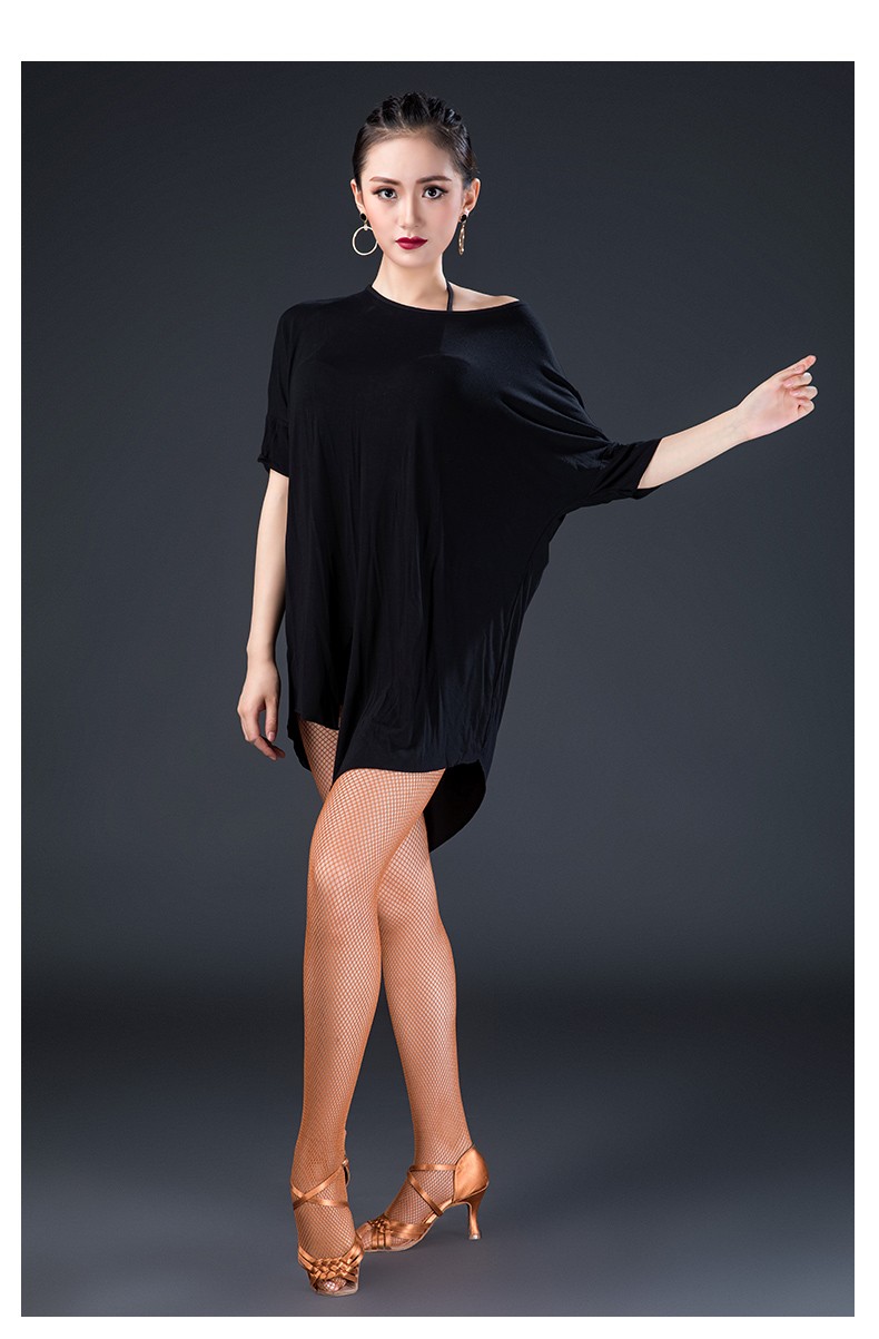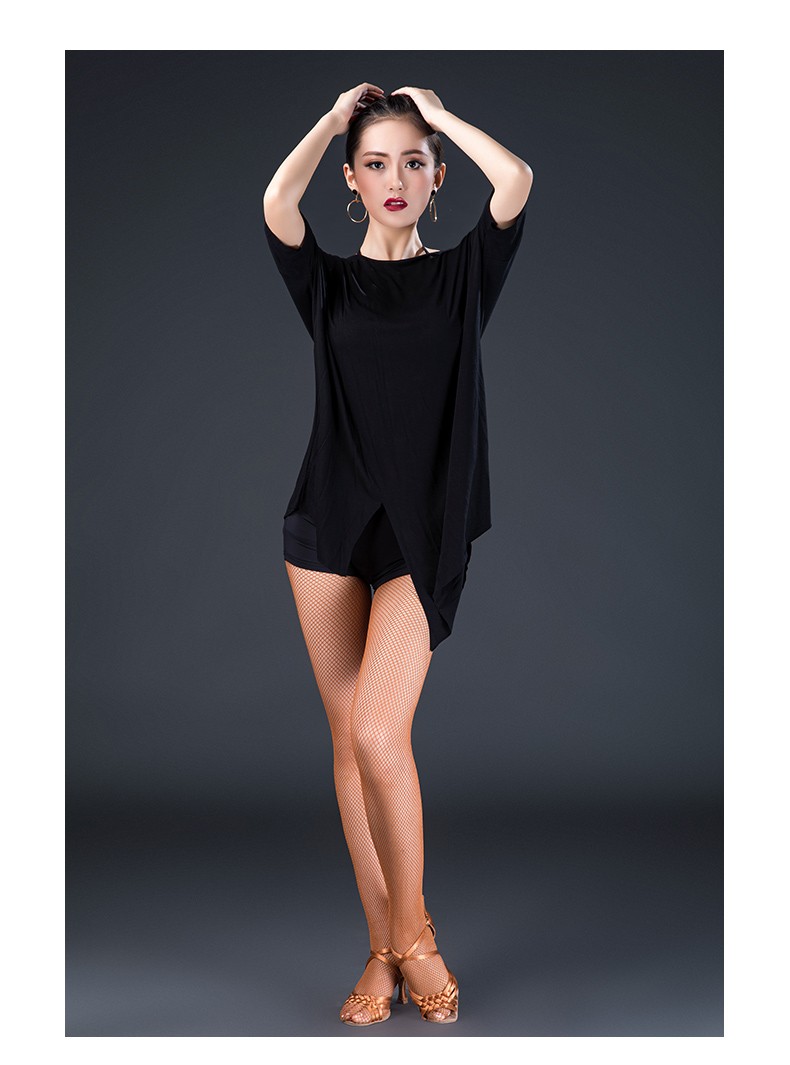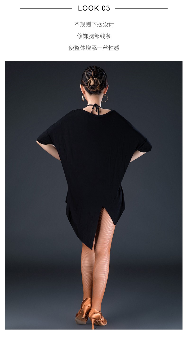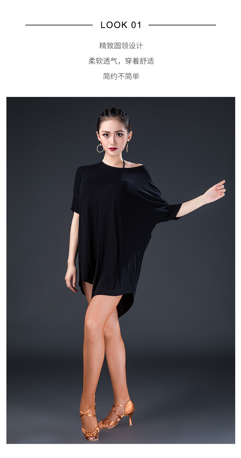 皇朝拉丁舞服成人男女新款舞蹈练功服上衣袖一字领性感现代舞服L180601