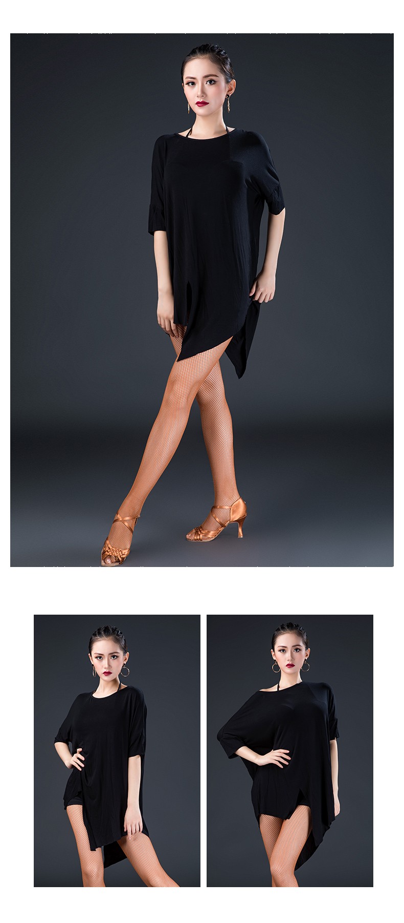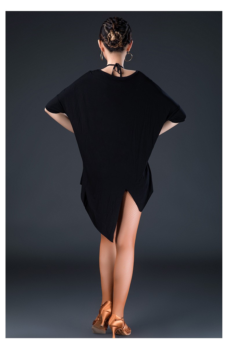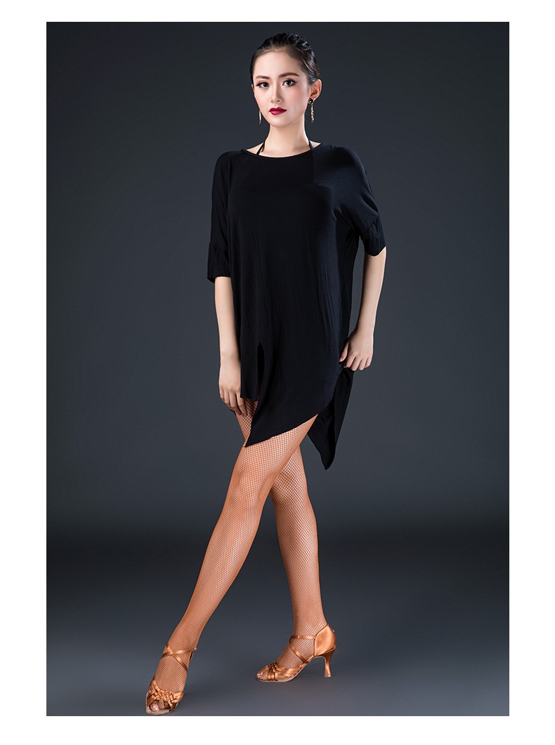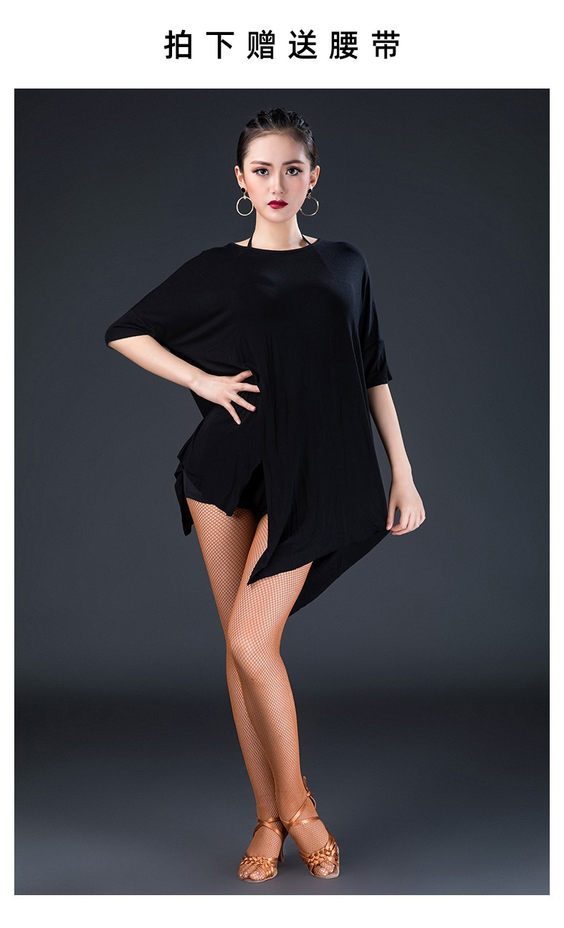 皇朝拉丁舞服成人男女新款舞蹈练功服上衣袖一字领性感现代舞服L180601