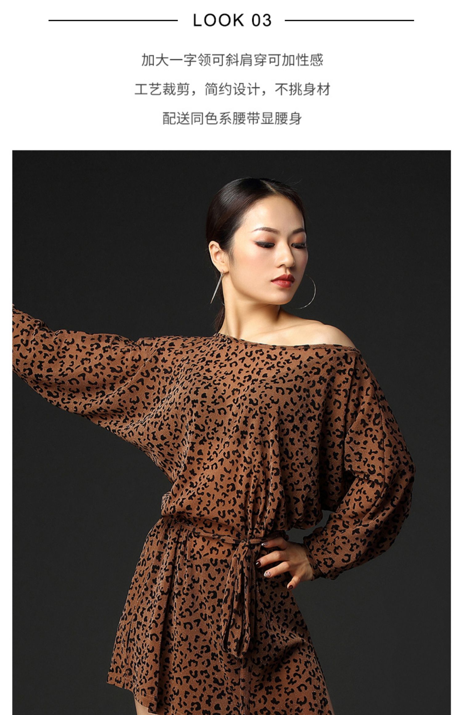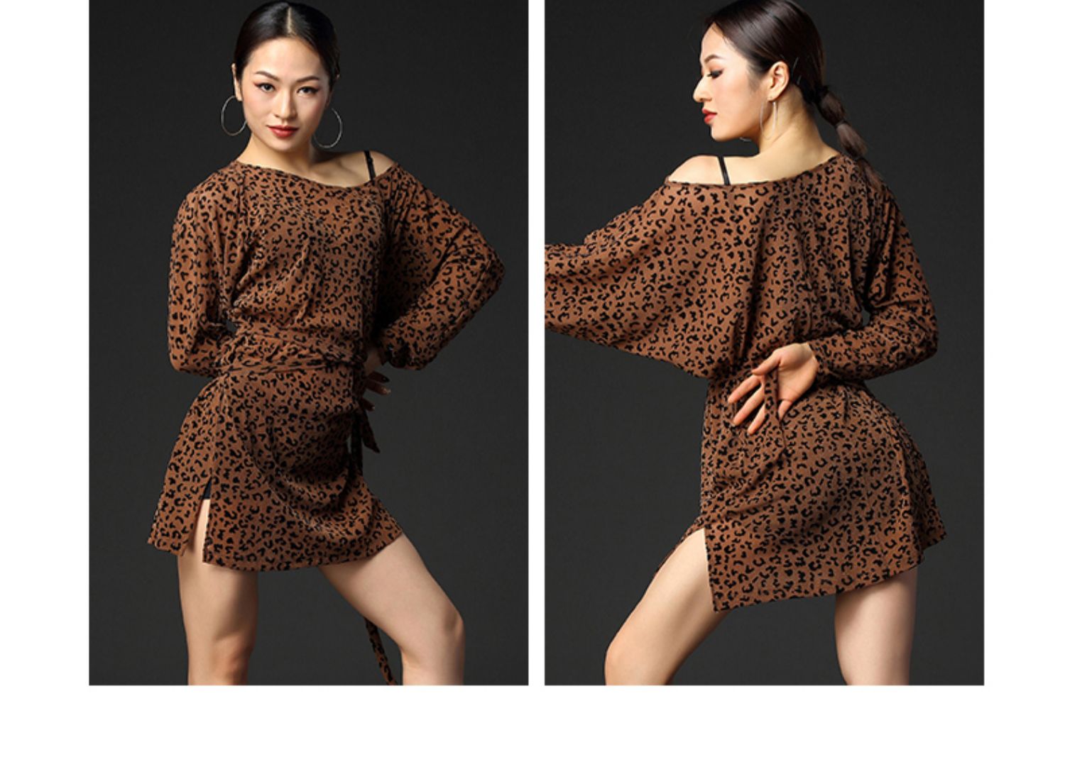 皇朝舞蹈拉丁舞裙女成人套装专业性感豹纹舞裙拉丁舞连衣裙练功服 A3208