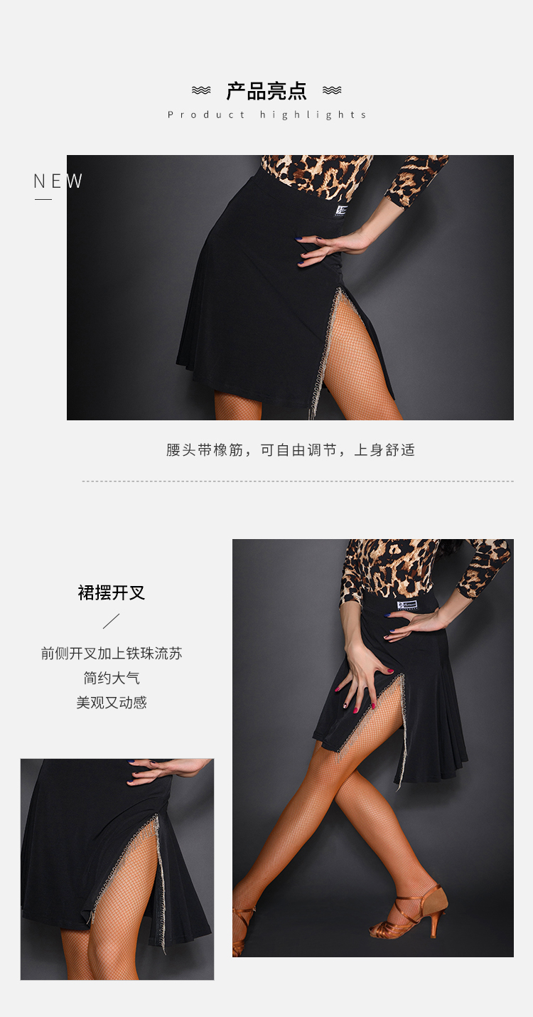 皇朝拉丁舞裙新款半身裙女练功服大摆裙侧开叉短裙显腿长AH7151