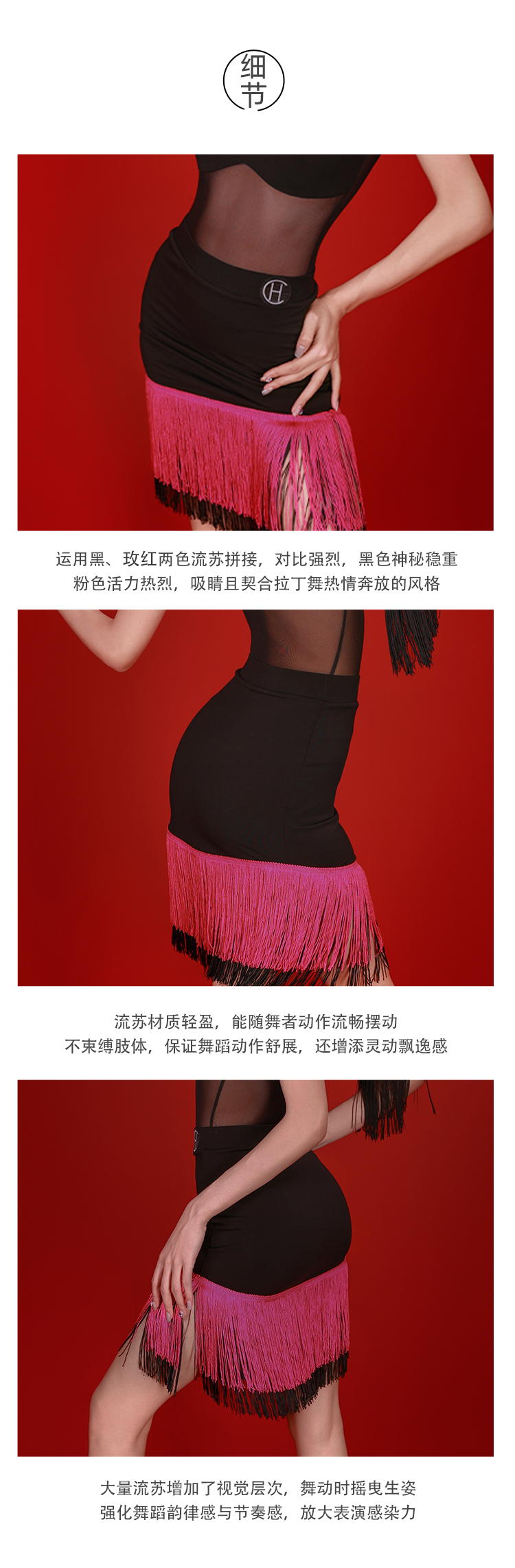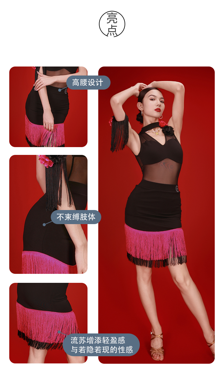 HCDANCE拉丁舞流苏裙女士成人半身裙短裙练功裙服装C