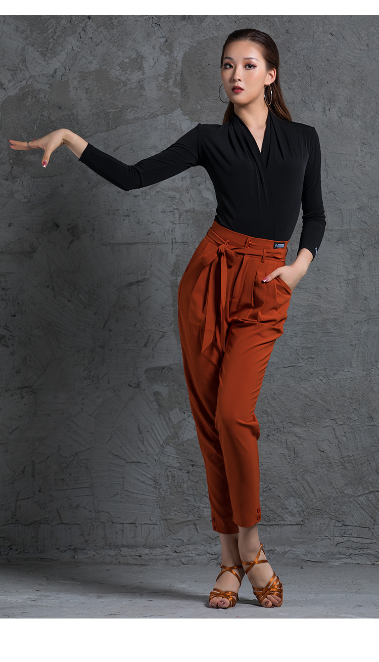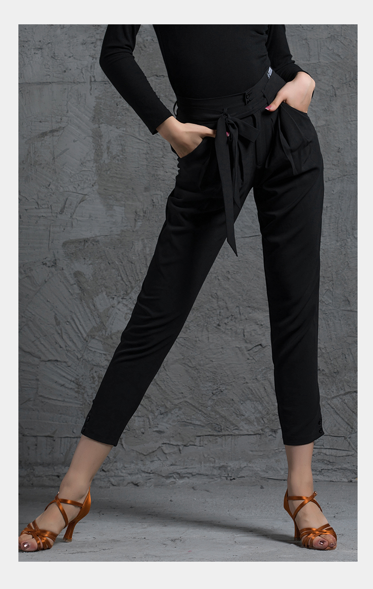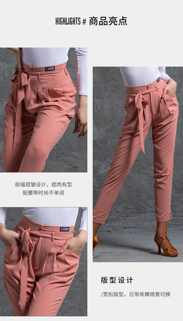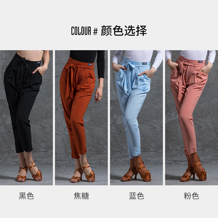 皇朝拉丁舞女成人下装练功服舞蹈裤运动跳舞练习裤绑带小脚萝卜裤A8001