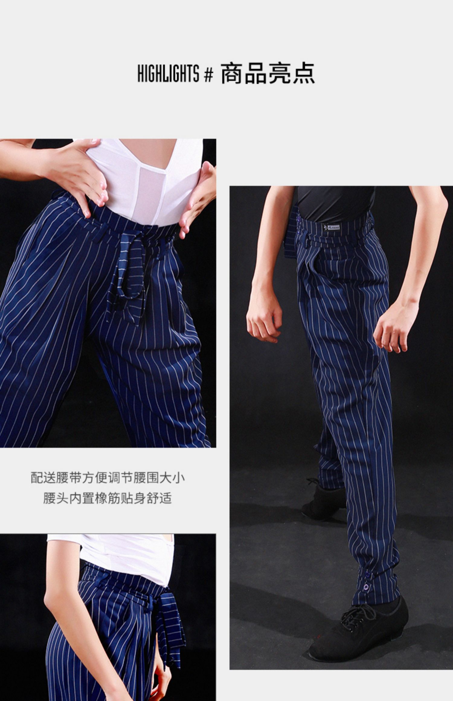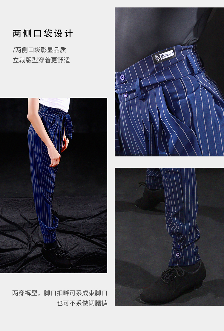 皇朝拉丁舞服男士国标舞交谊舞演出服练功裤新款绑带高档拉丁舞裤AN8004
