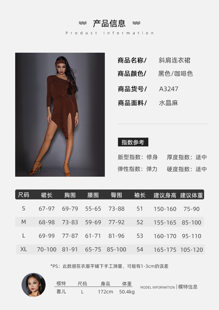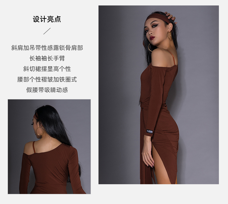 皇朝拉丁舞服练功服女成人舞蹈服新款连衣裙专业拉丁训练服A3247(长袖)