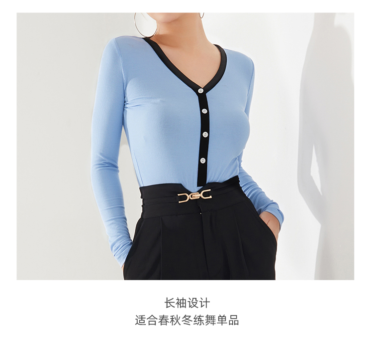 IAMYC摩登舞服装上衣女国标舞练功服上衣网红跳舞衣服长袖B10027