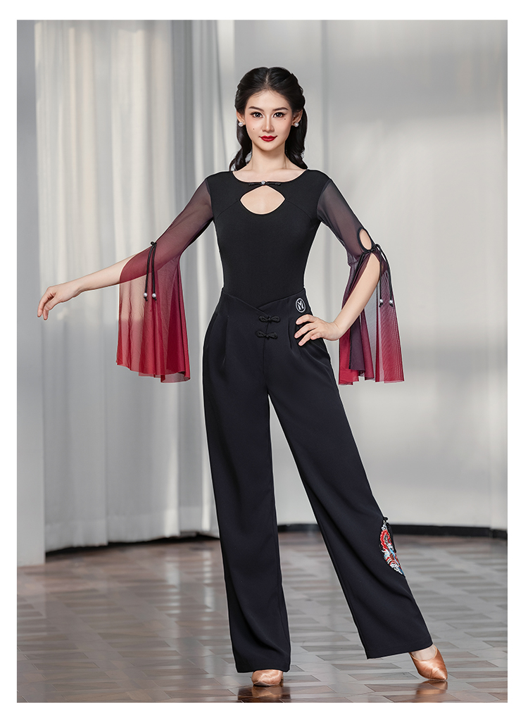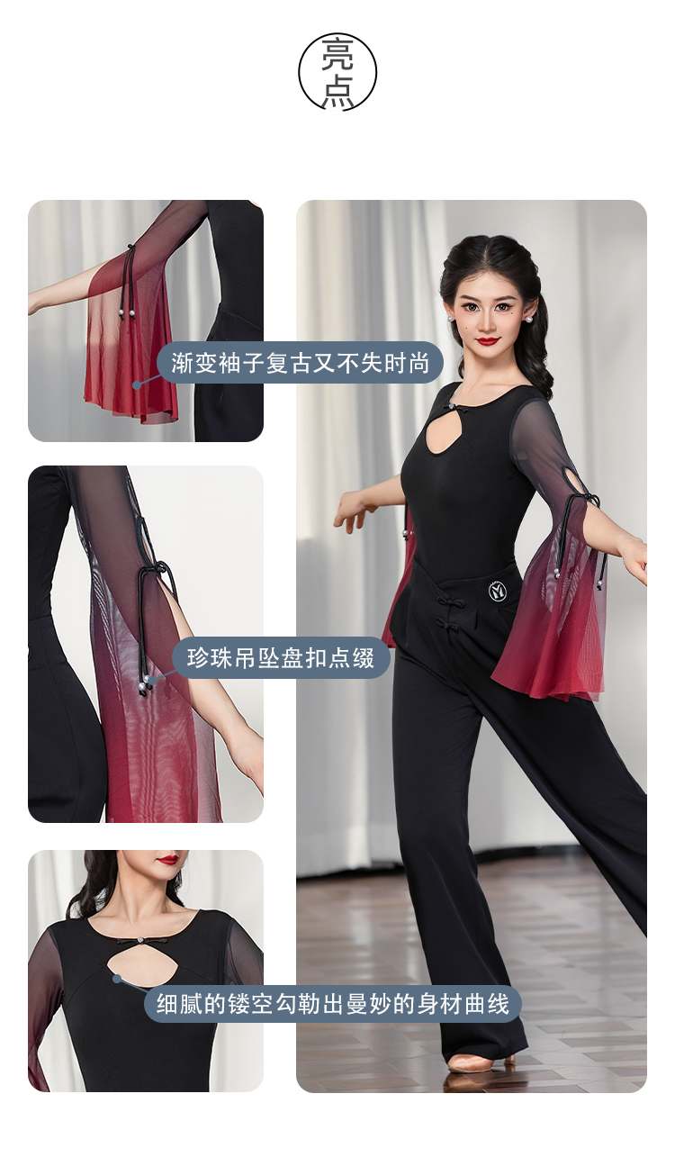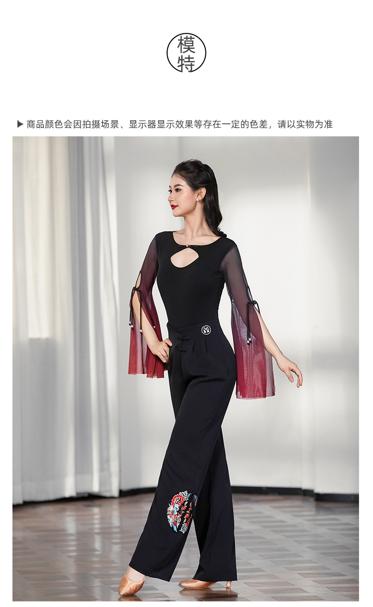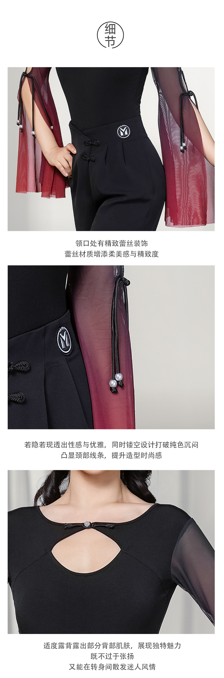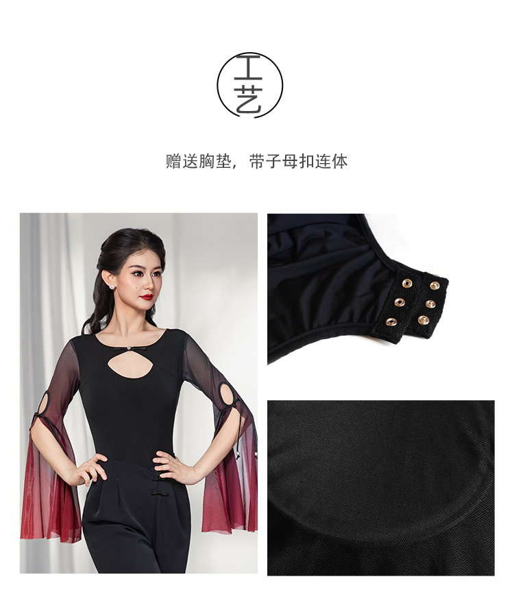 IAMYC摩登舞上衣女连体喇叭袖形体练功服交谊舞服装B10133