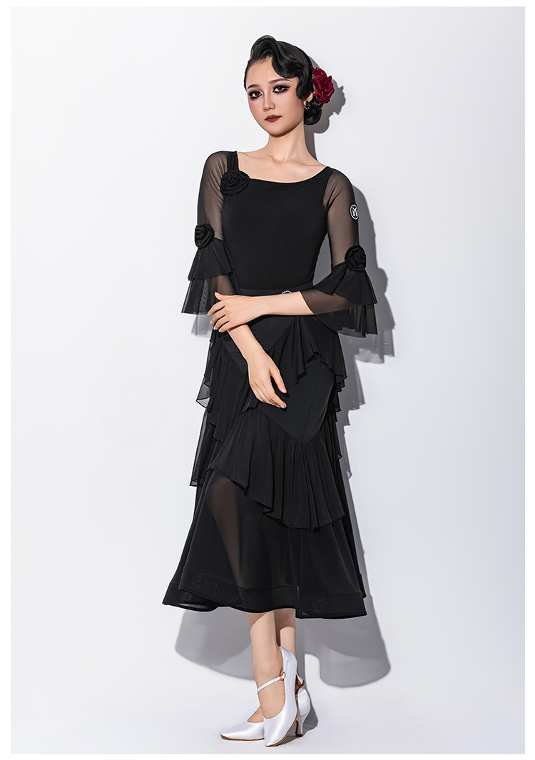 IAMYC新款摩登舞服网纱荷叶边鱼骨大摆半身裙B20131