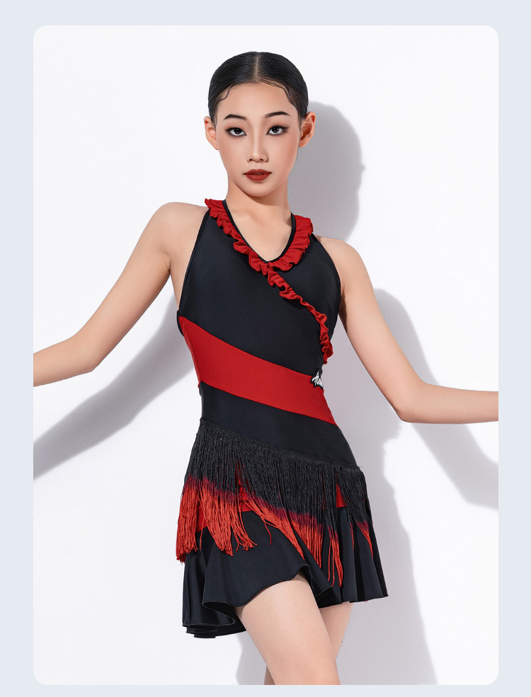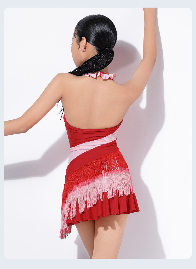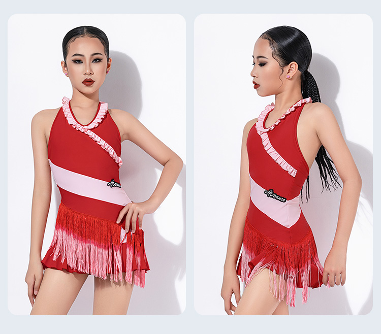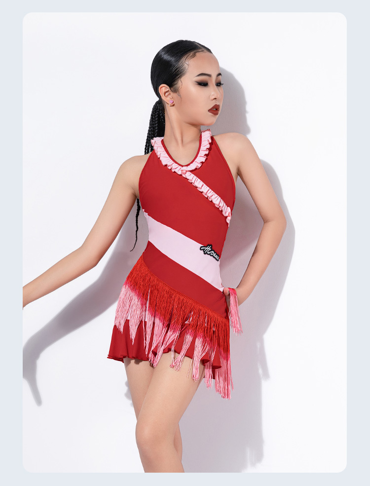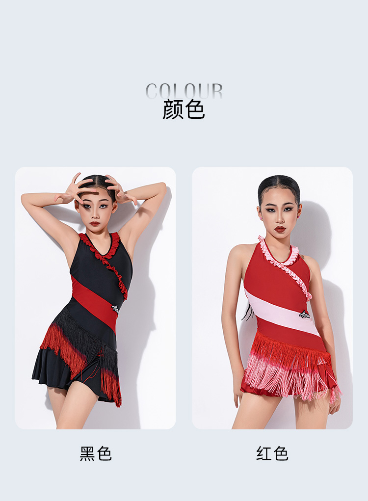 皇朝舞服拉丁舞裙练功服女儿童流苏训练服国标舞吊带连衣裙 H9363
