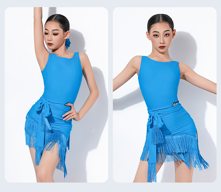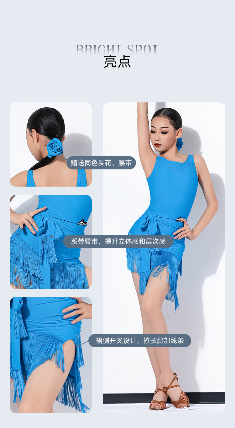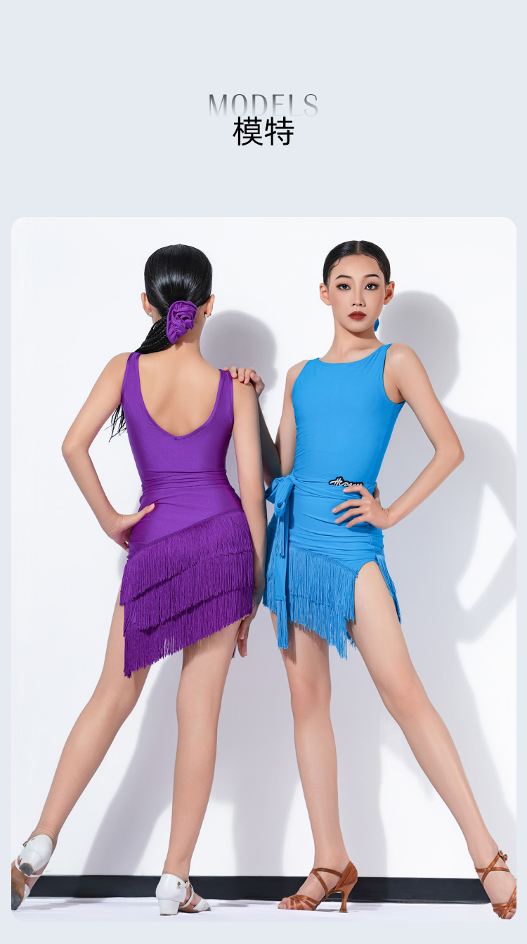 皇朝拉丁女童练功服少儿2024新款吊带连衣裙露背流苏舞裙 H9267