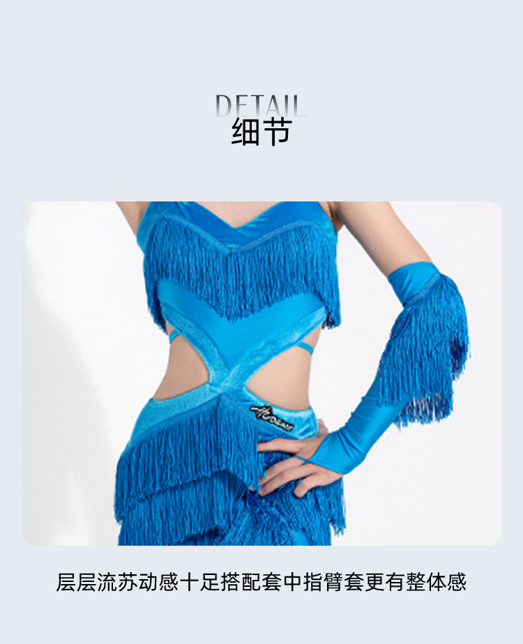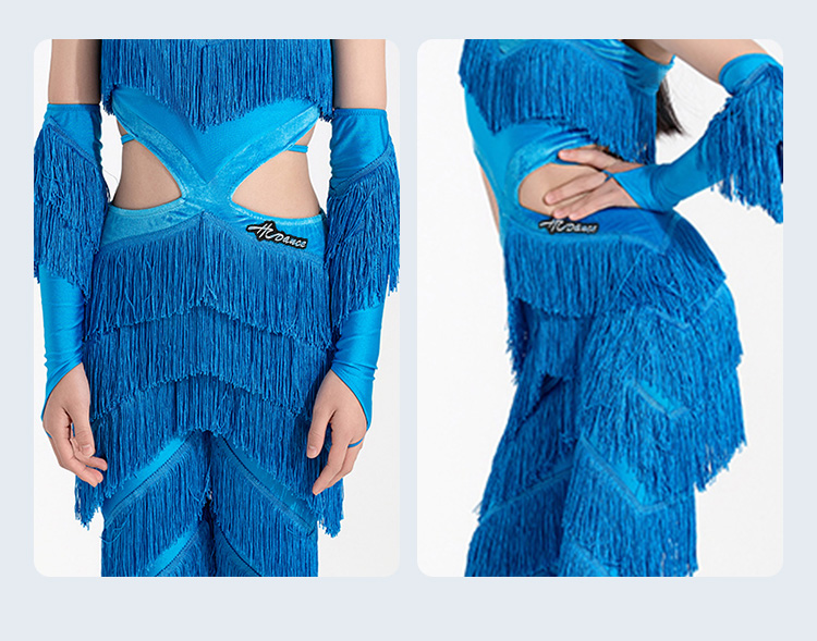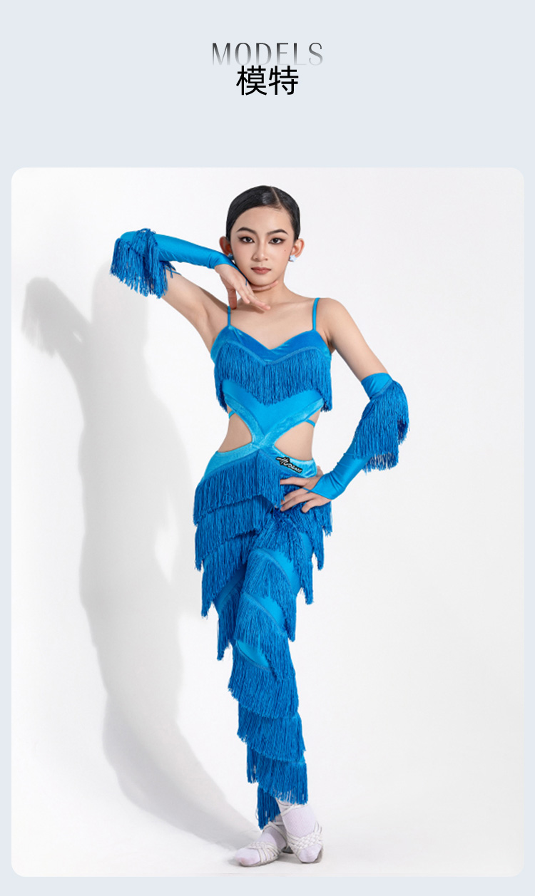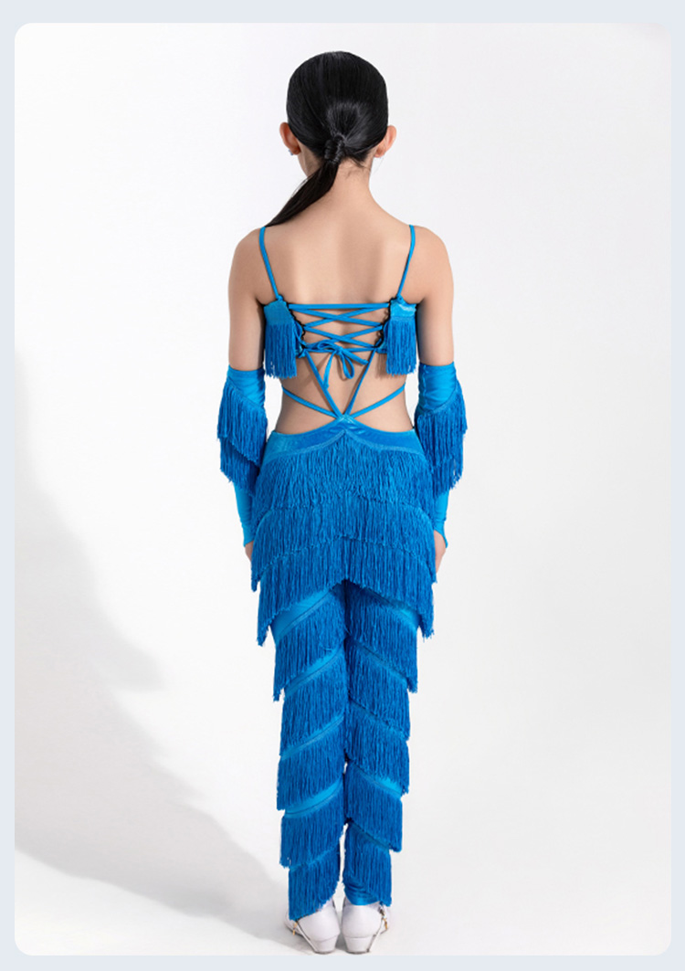 皇朝拉丁服女童比赛服新款露背绑带重磅流苏裤表演服配手套H9343