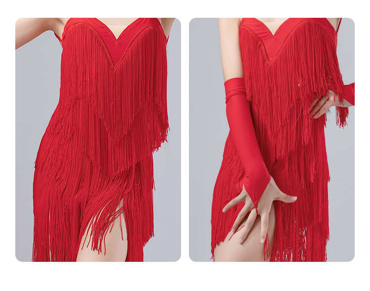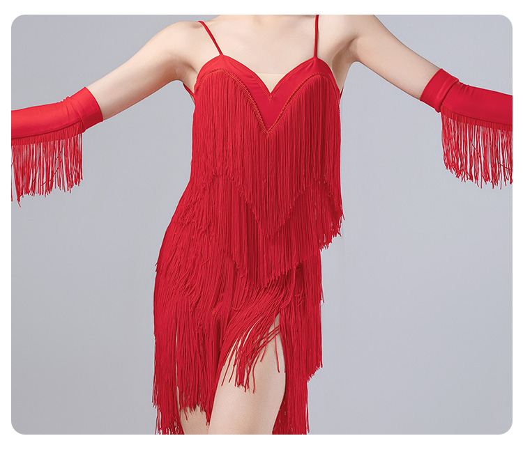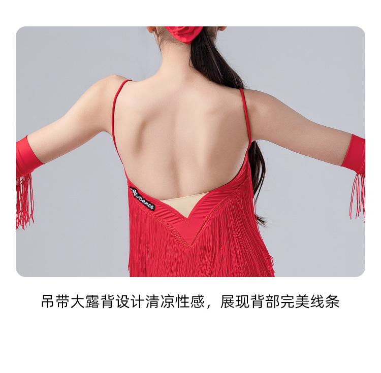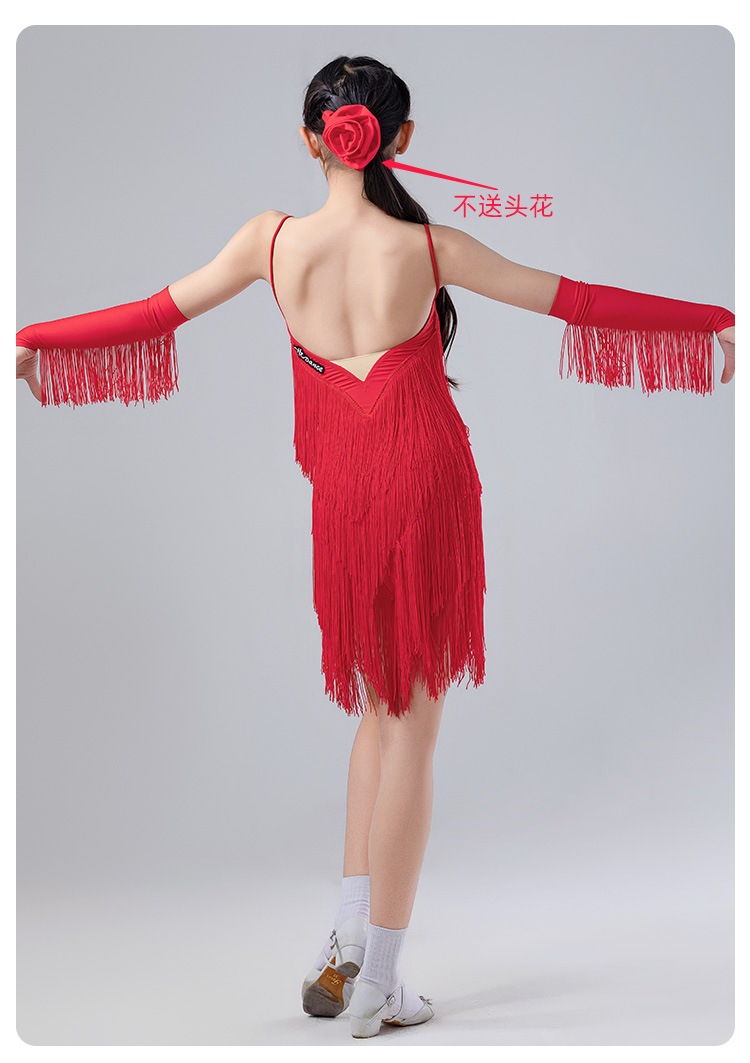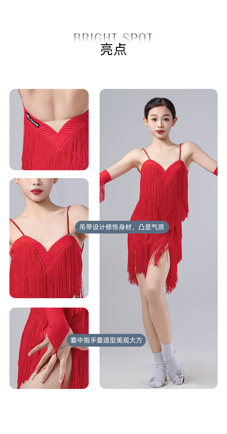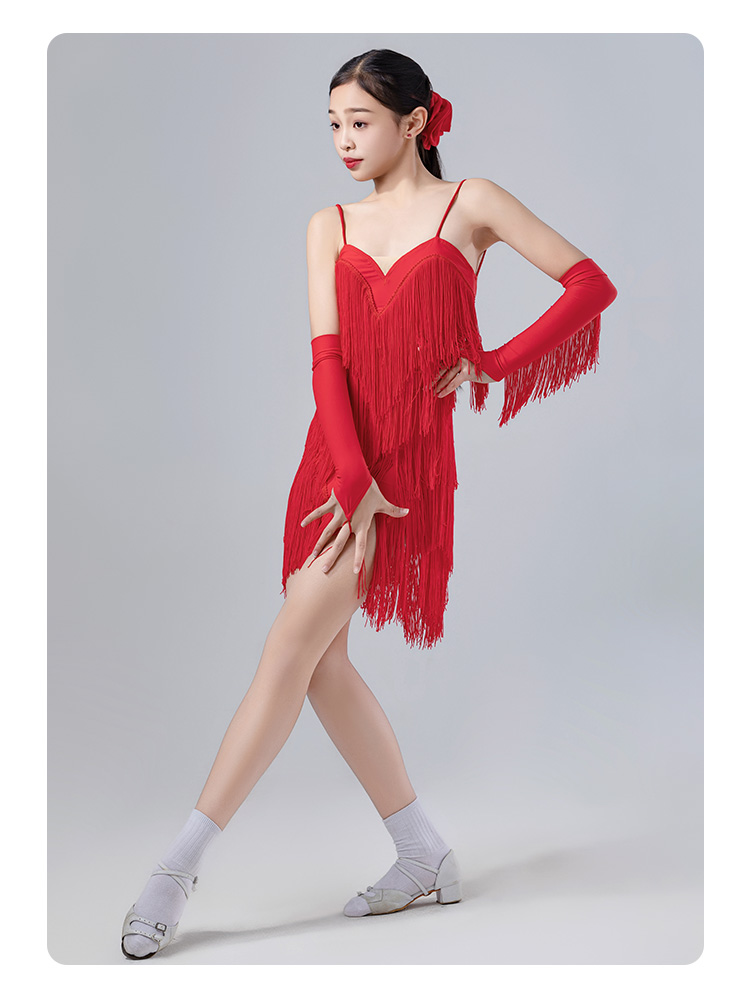 皇朝拉丁舞服流苏连衣裙夏季吊带表演舞裙女童送手套发带 H9326-2