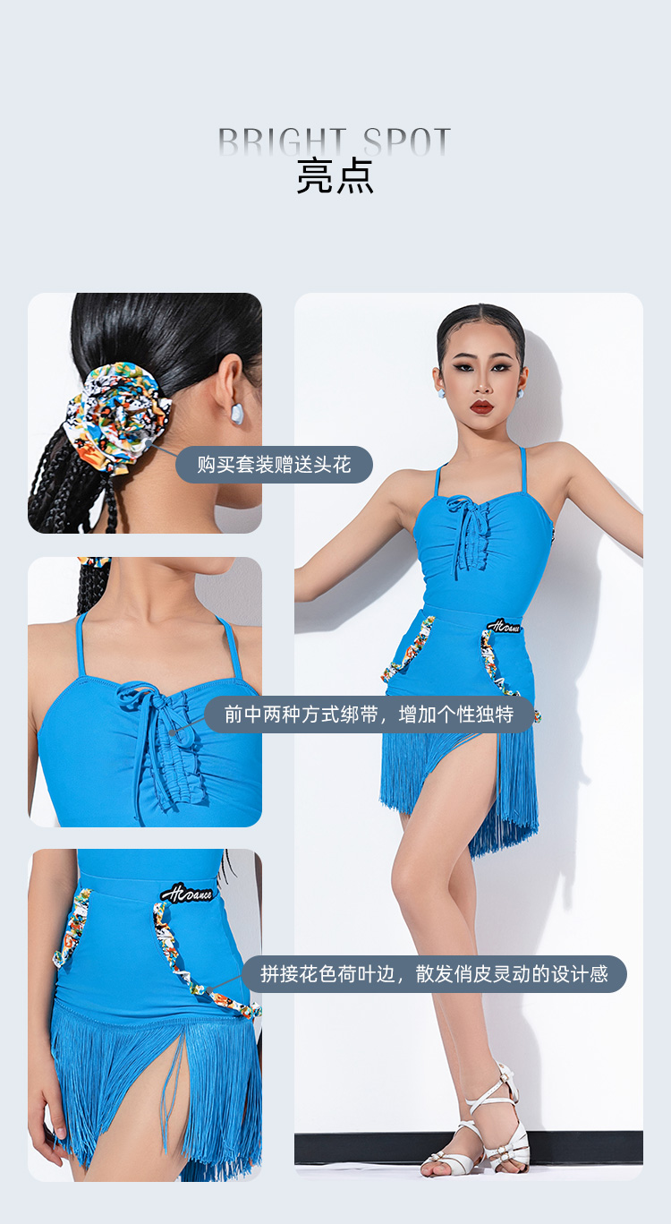 皇朝拉丁新款拉丁舞服少儿秋季吊带上衣流苏裙半身裙 H6387+H7303
