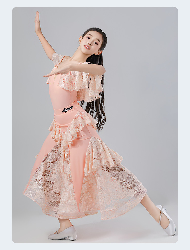 皇朝拉丁2024年3月女童摩登V领肩带拼接蕾丝套装H6375+H7295