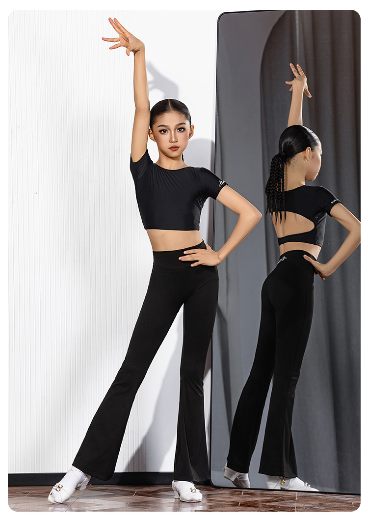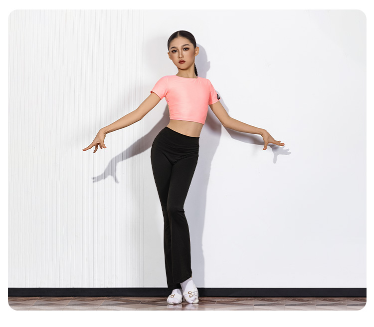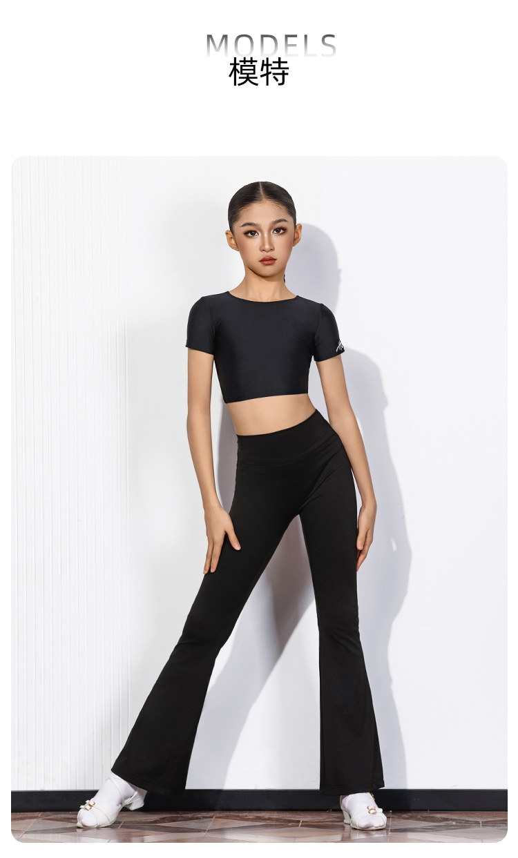 皇朝拉丁拉丁舞长袖短上衣高腰长裤训练修身练功服H6445+H7369