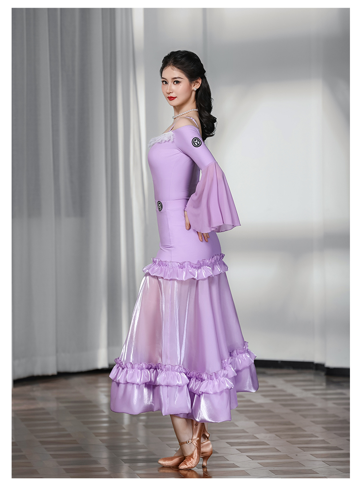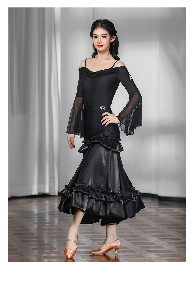 IAMYC摩登舞裙露肩荷叶边上衣大裙摆华尔兹舞蹈裙B10127+B20088