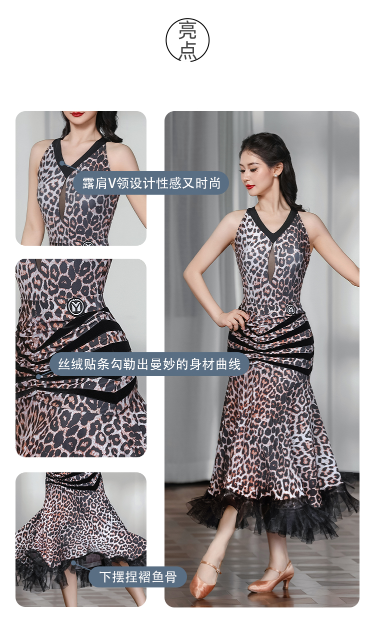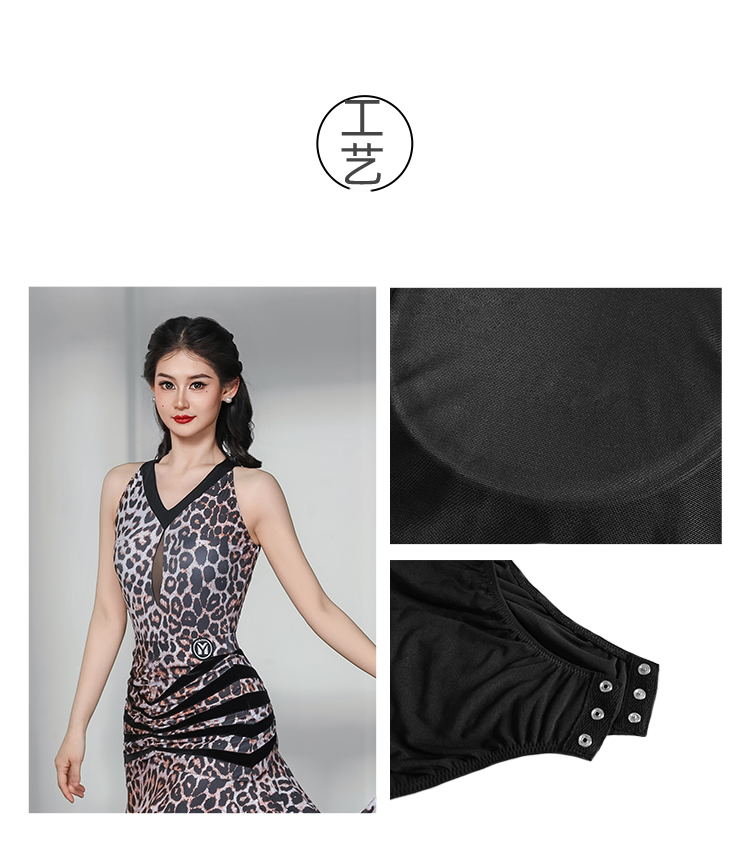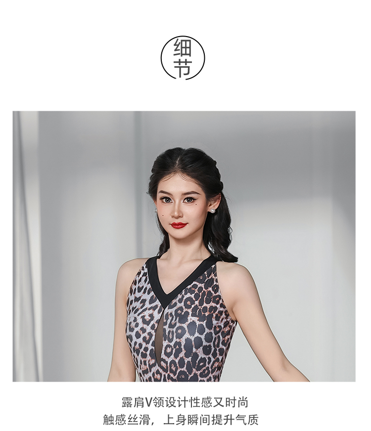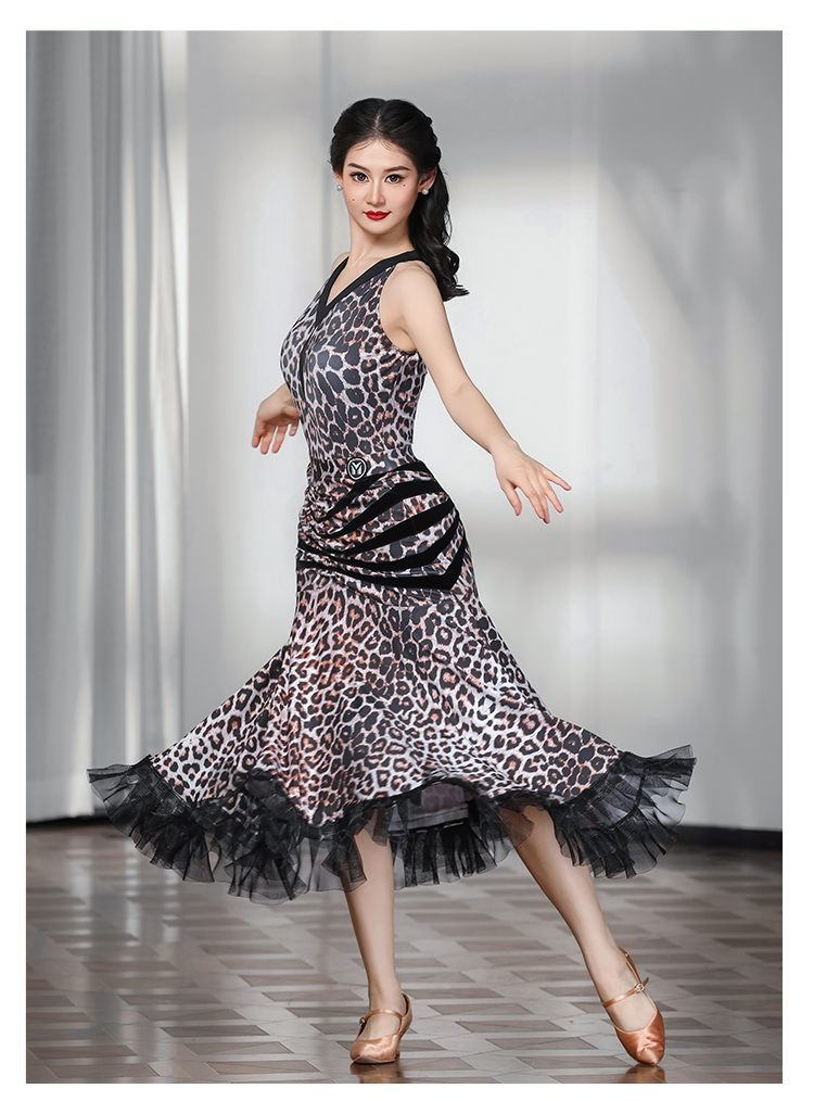 IAMYC华尔兹舞裙女新款咖豹V领无袖上衣摩登舞裙B10136+B20093