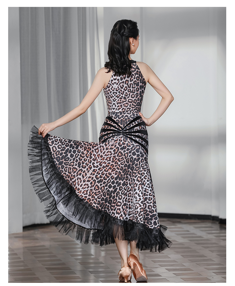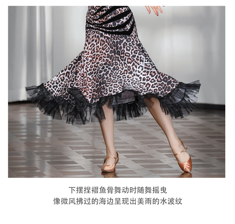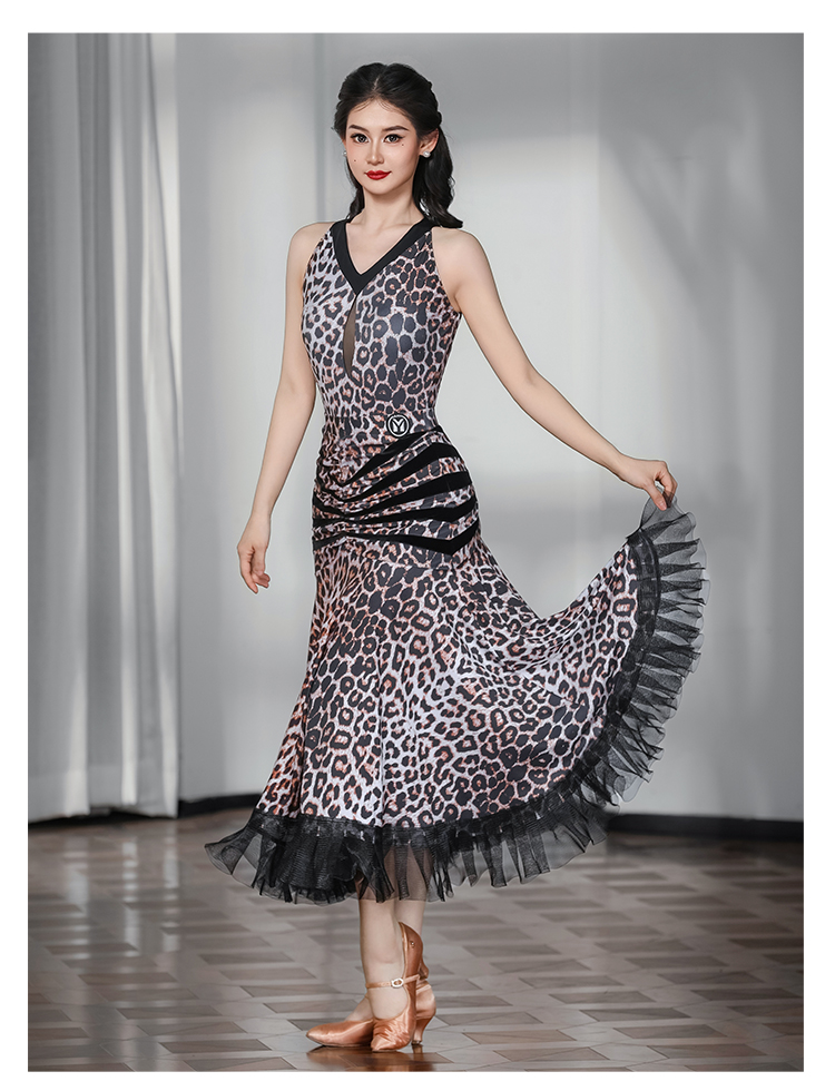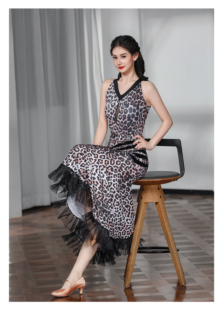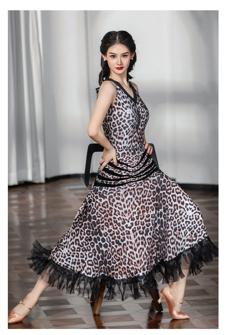 IAMYC华尔兹舞裙女新款咖豹V领无袖上衣摩登舞裙B10136+B20093