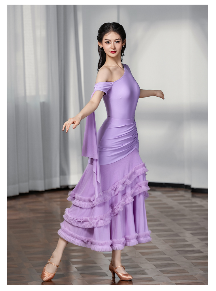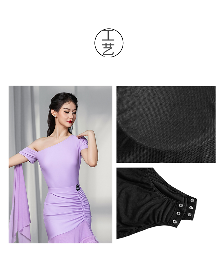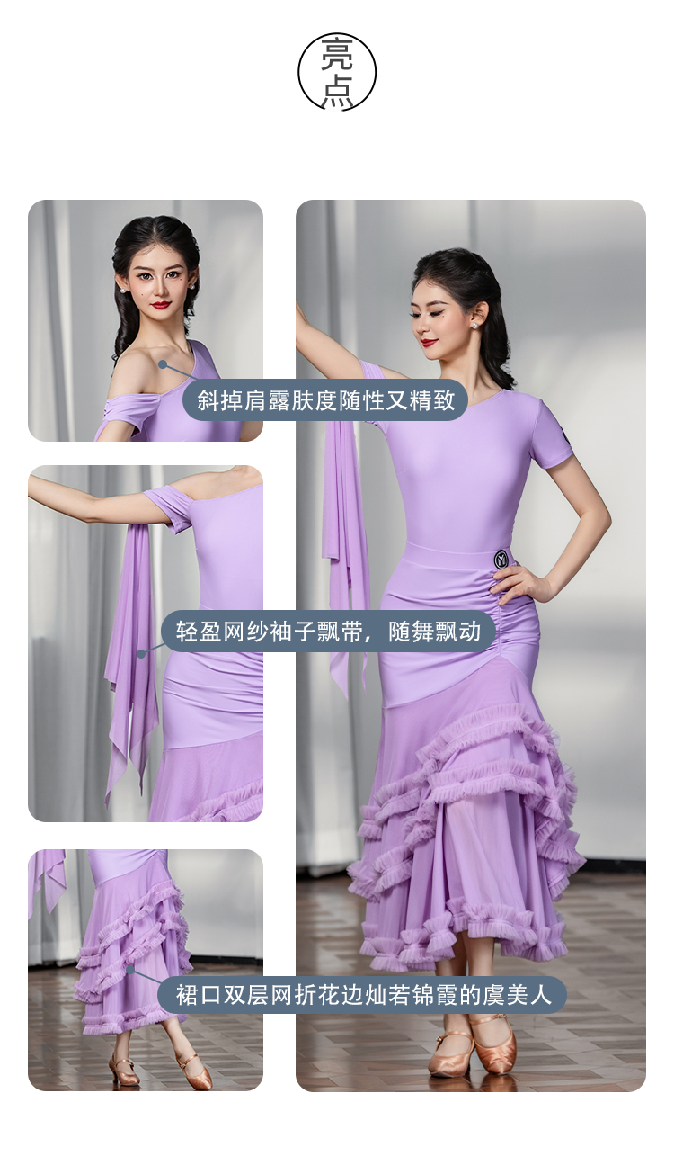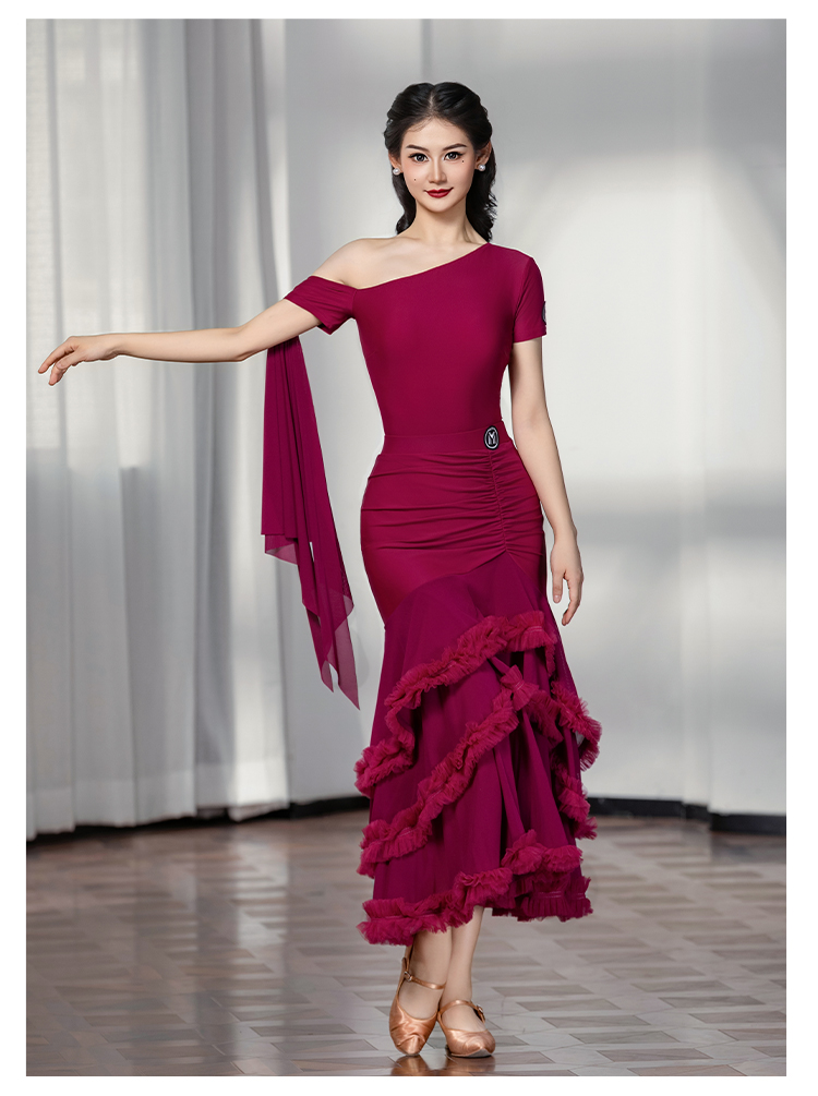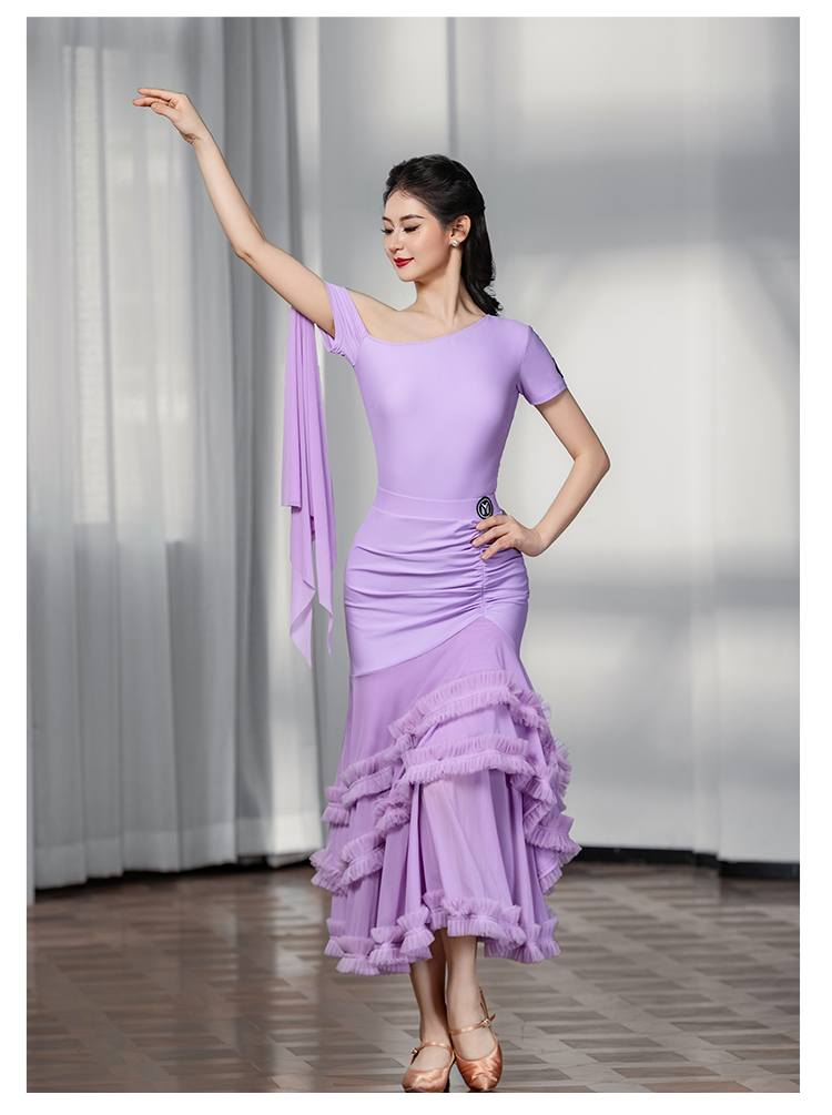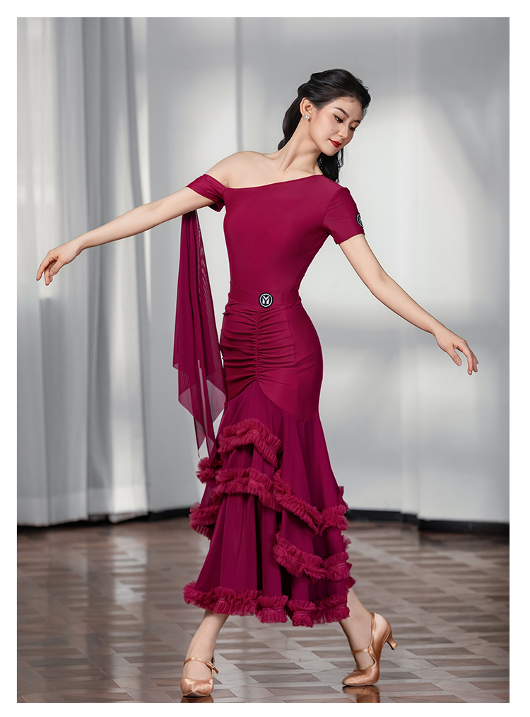 IAMYC摩登舞服女成新款斜肩上衣网纱下摆花边网纱裙B10137+B20098