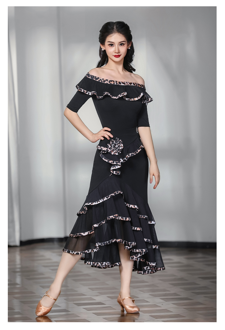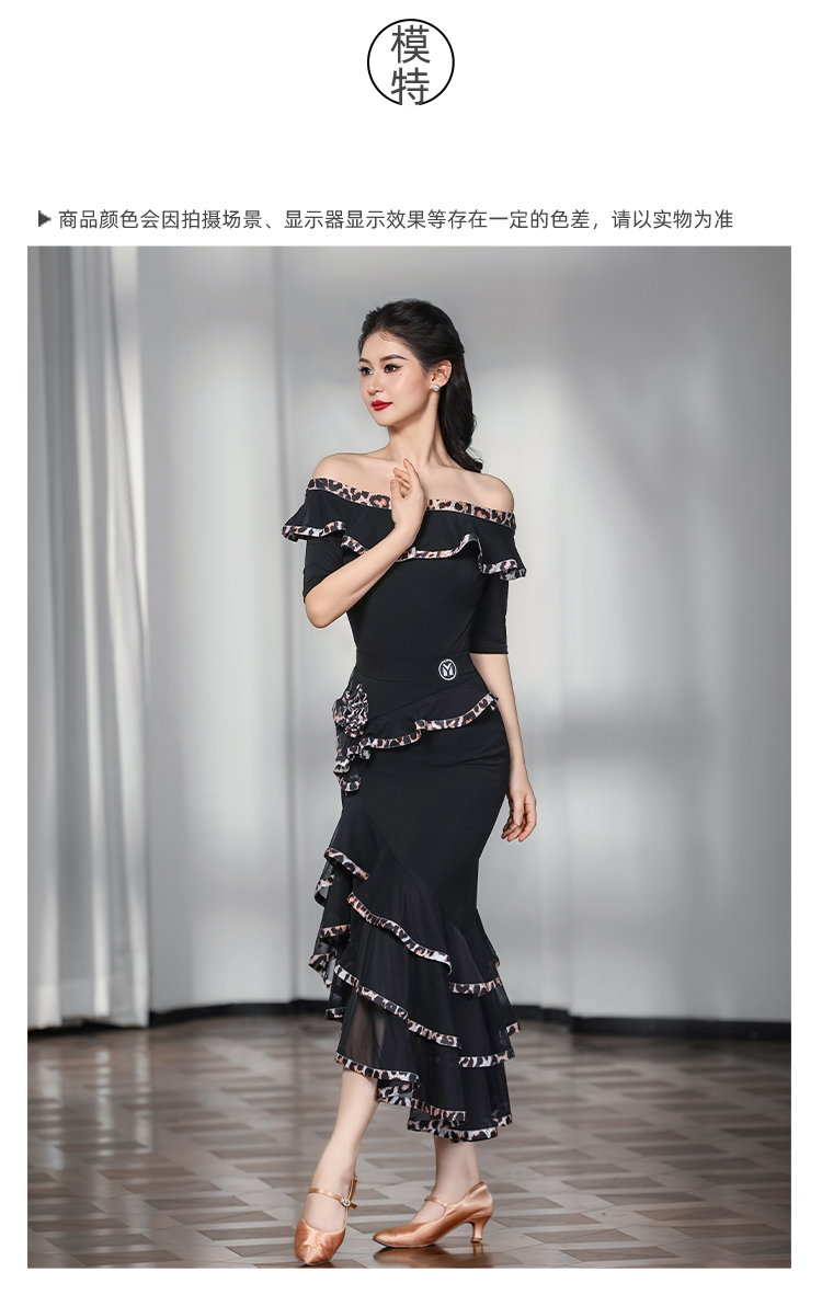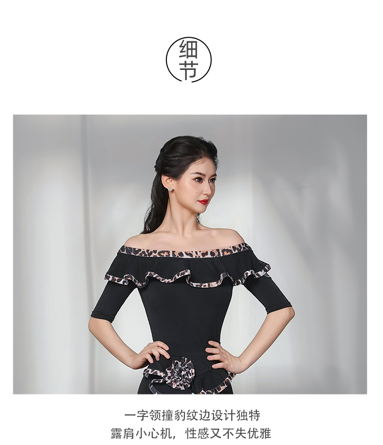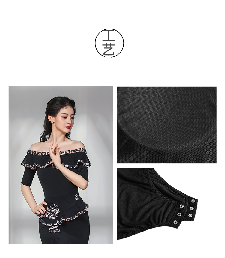 IAMYC摩登舞服女成练习服一字领豹纹花边套装表演服B10135+B20096
