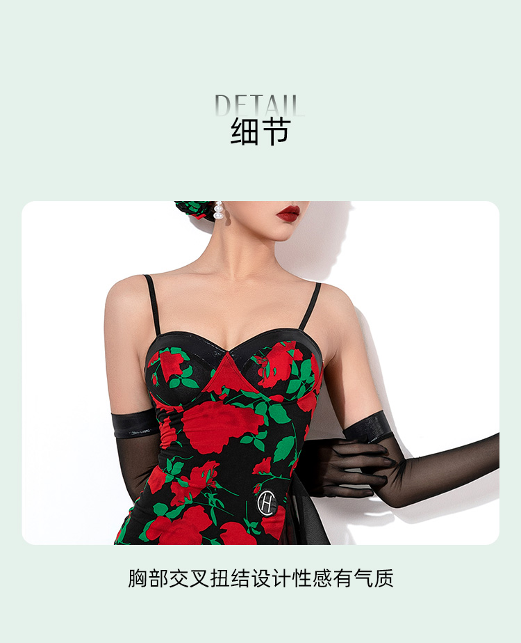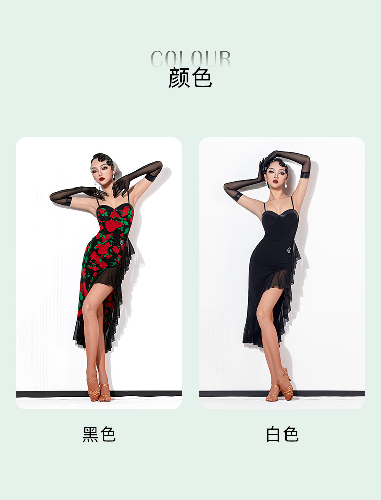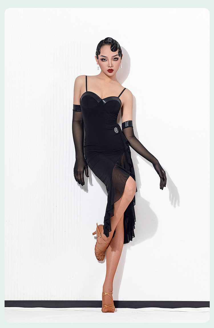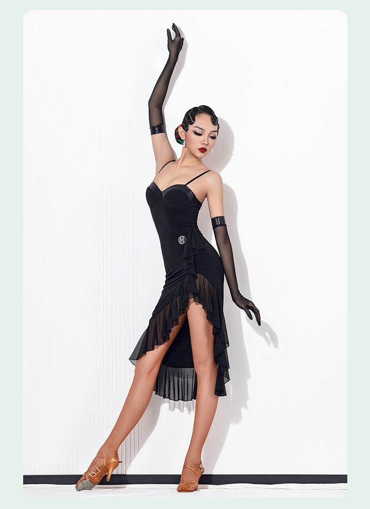 HC·DANCE拉丁舞服新款女成练功服复古撞色不规则吊带裙DL359