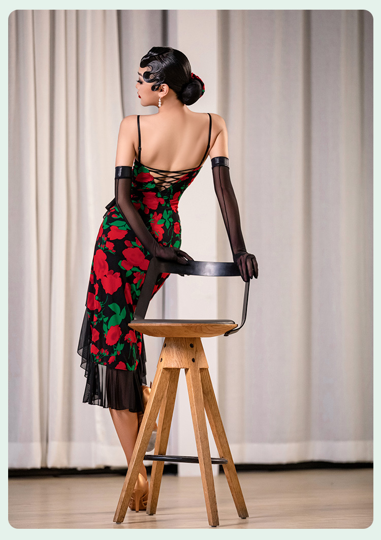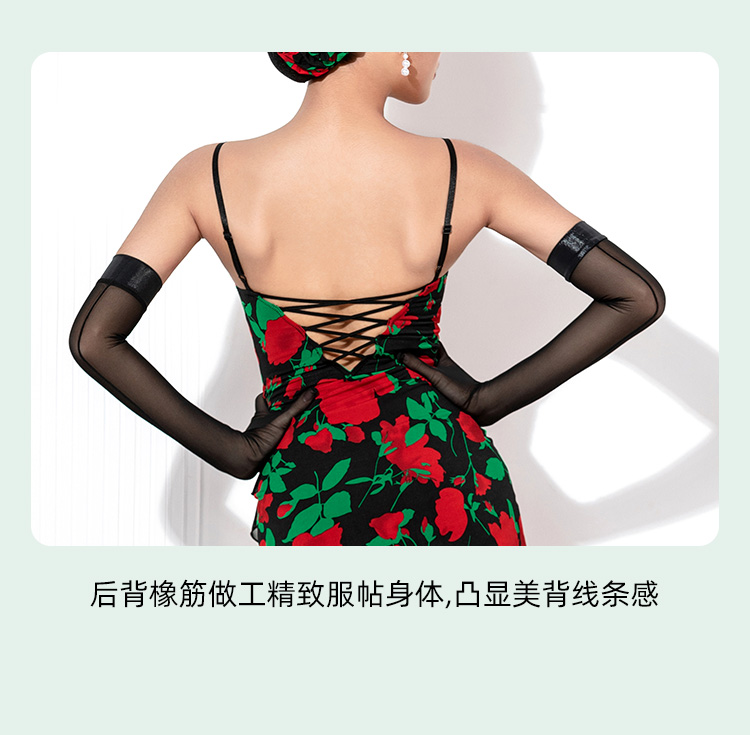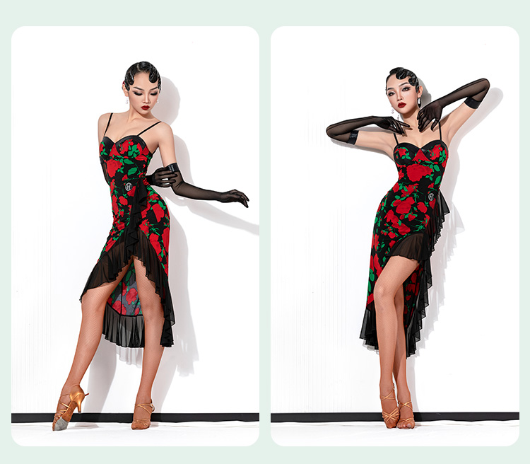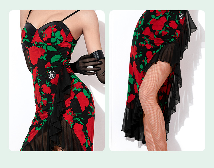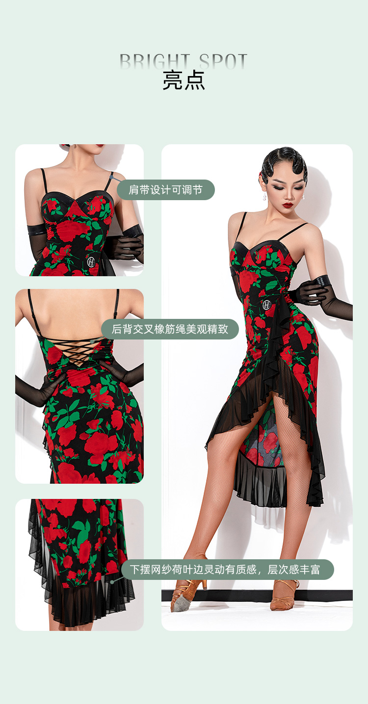 HC·DANCE拉丁舞服新款女成练功服复古撞色不规则吊带裙DL359