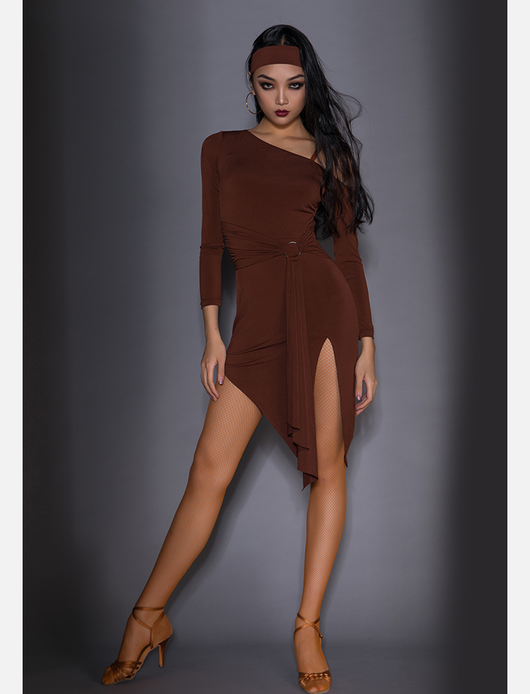 皇朝拉丁舞服练功服女成人舞蹈服新款连衣裙专业拉丁训练服A3247(长袖)