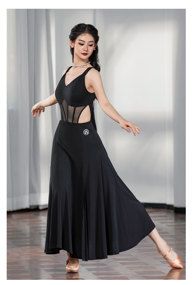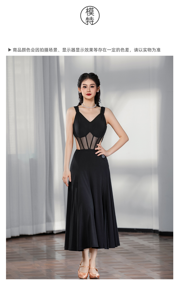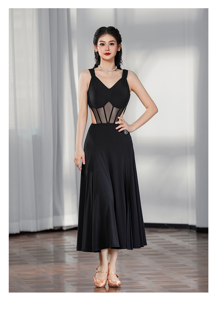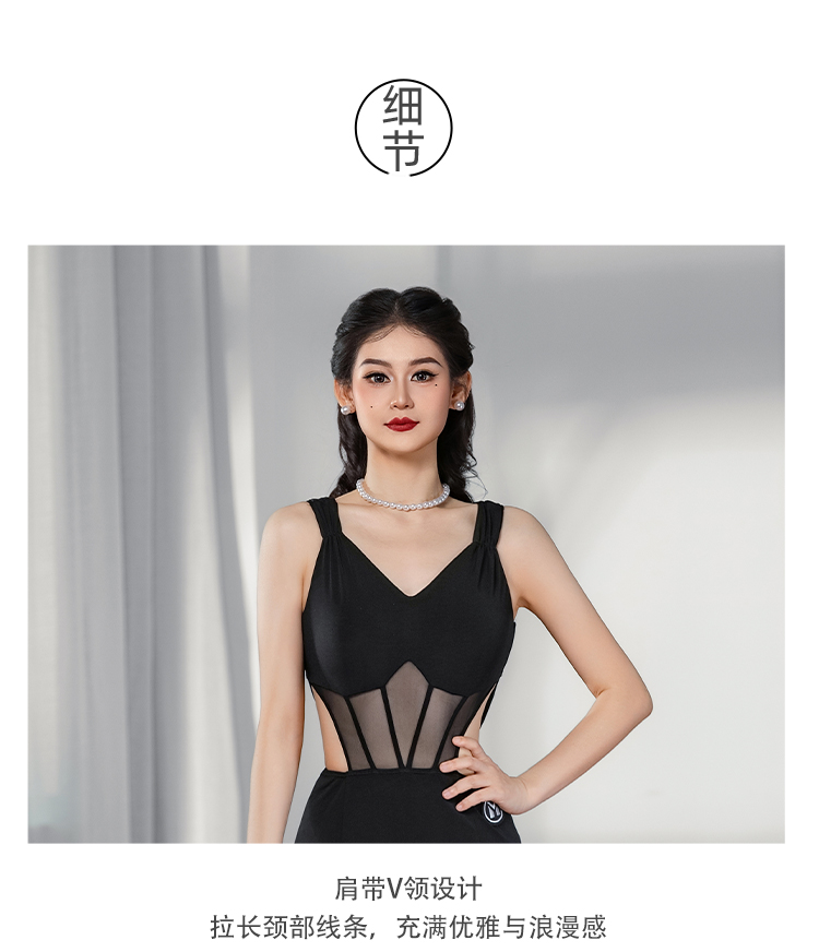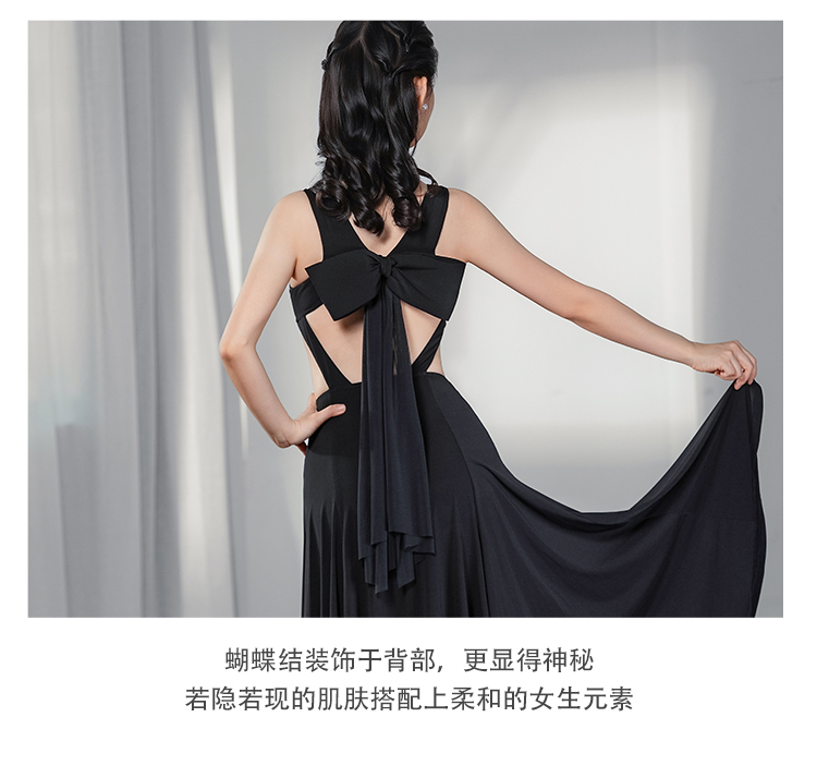 IAMYC摩登舞服女成2025年新款V领无袖镂空后背蝴蝶结连衣裙B30038