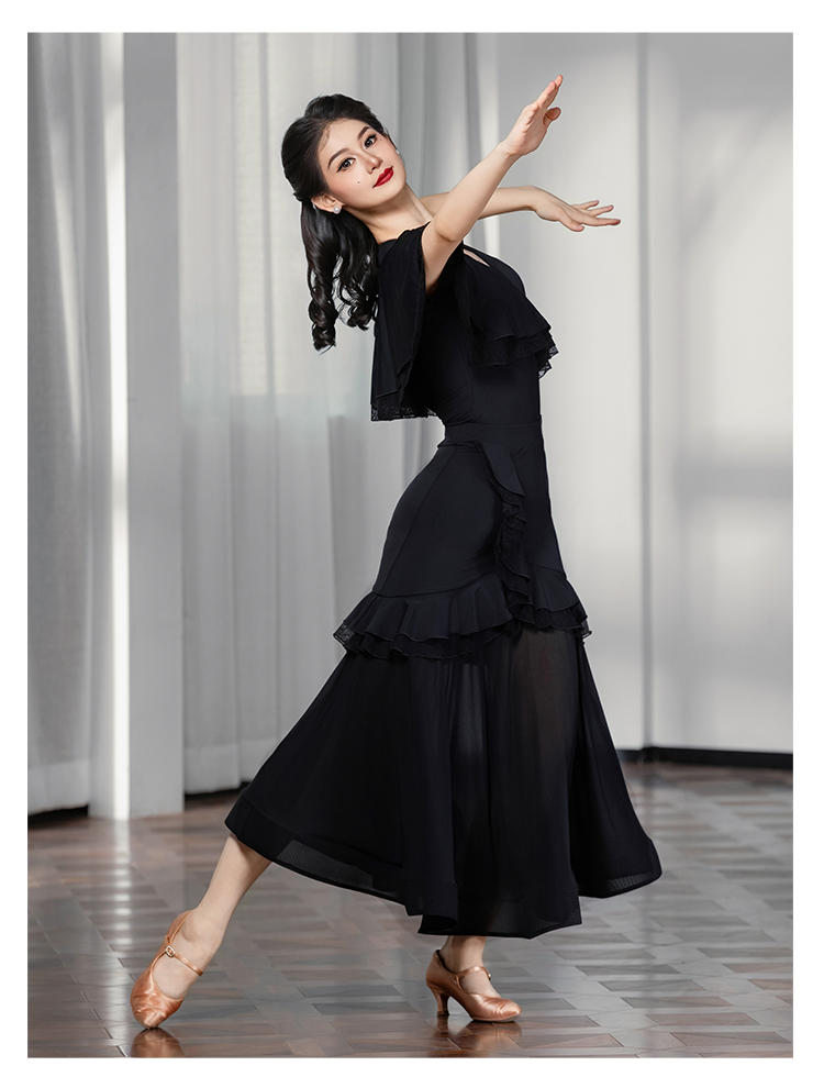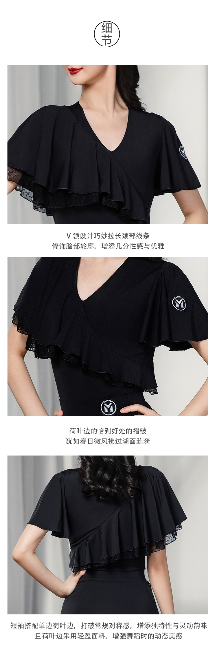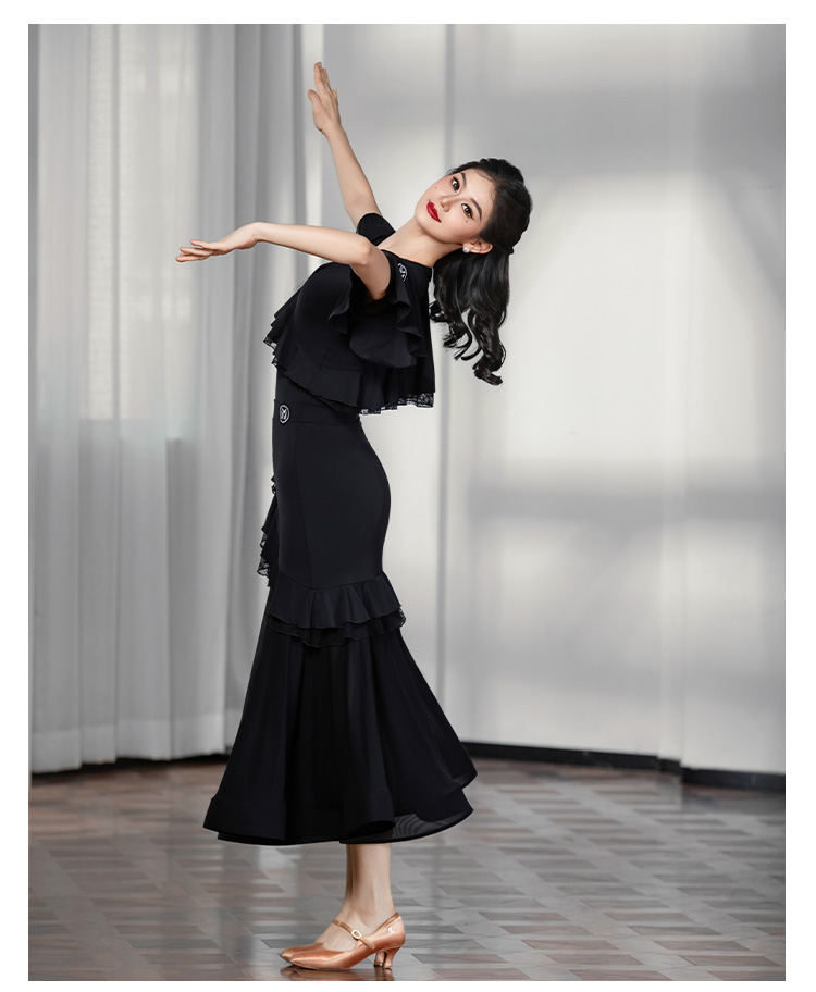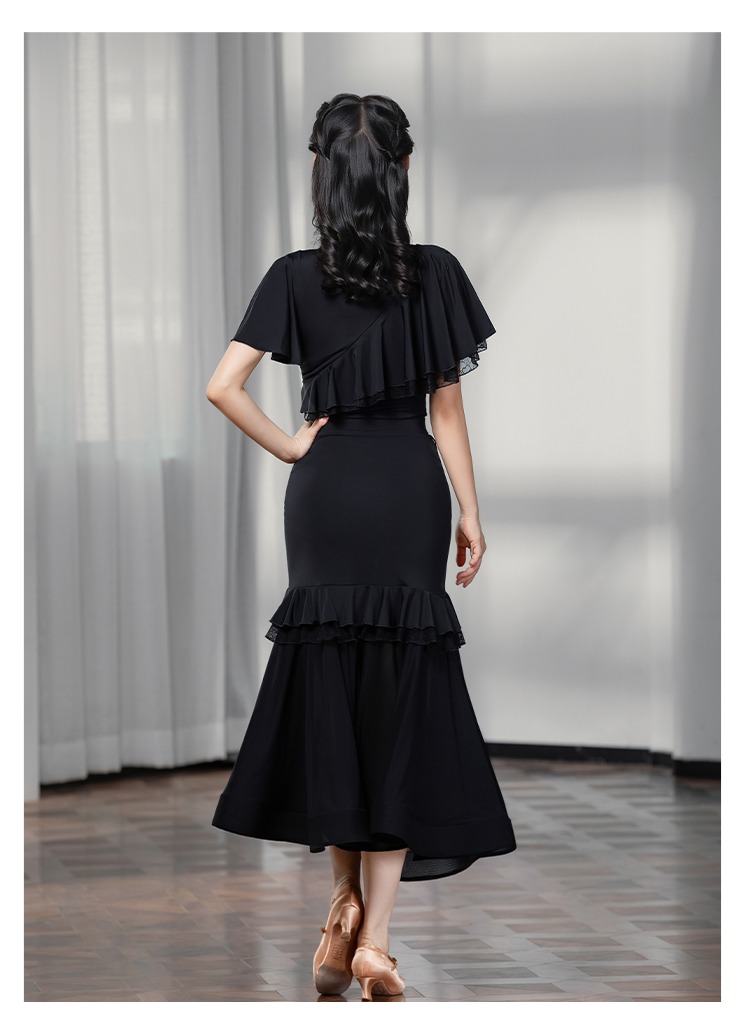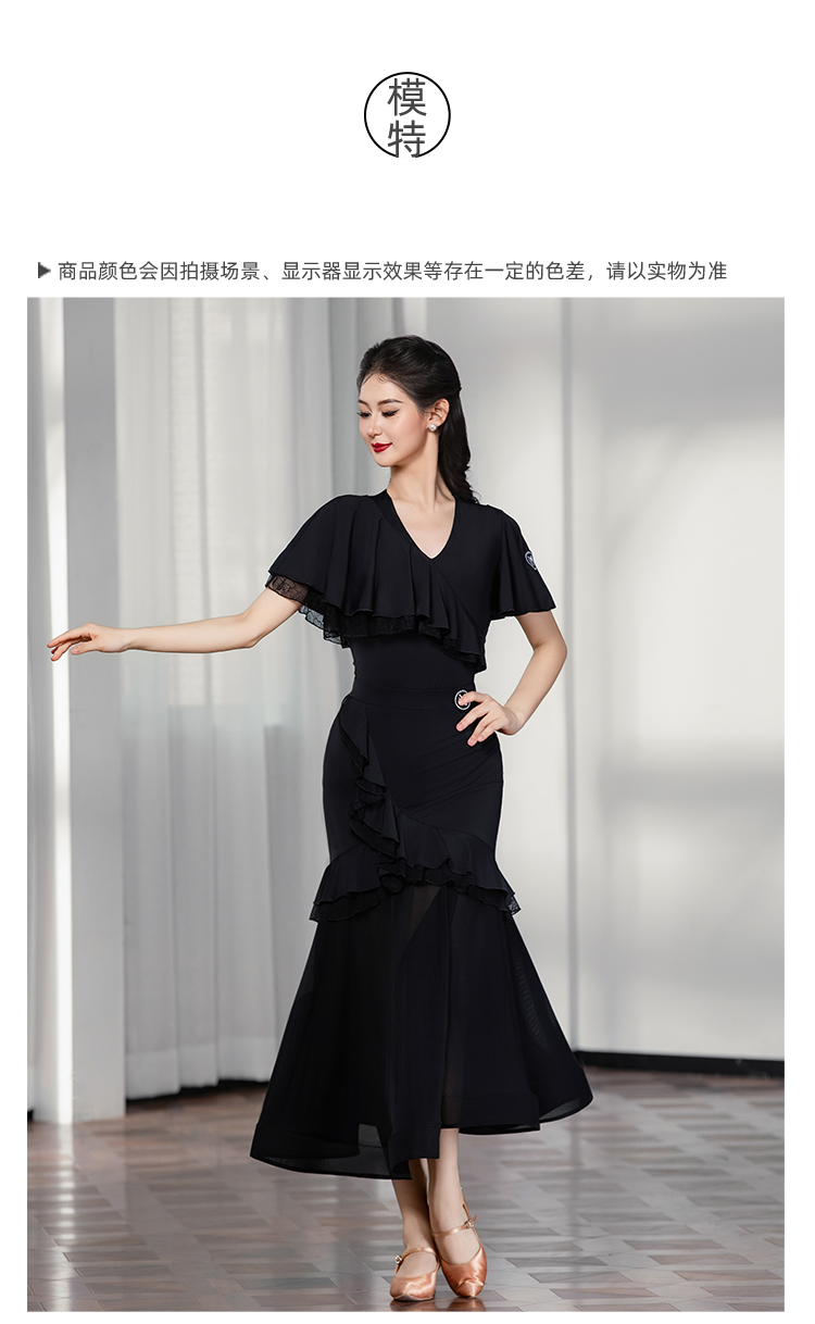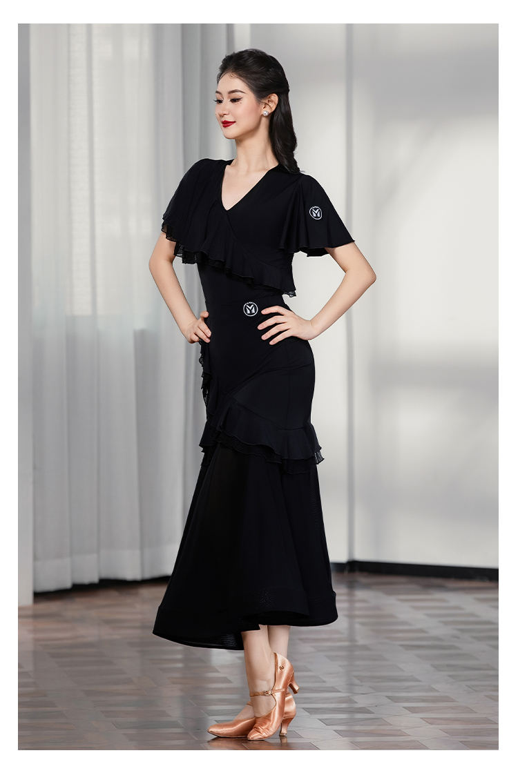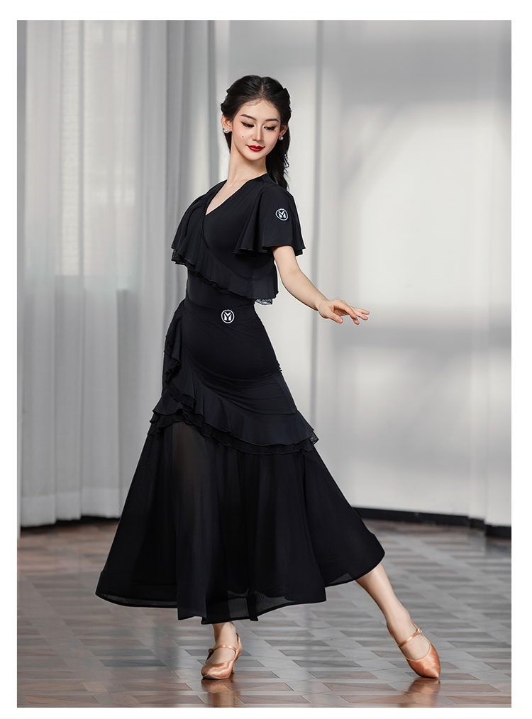 IAMYC摩登舞上衣女成人舞蹈服交谊舞练功服飘纱短袖B10129