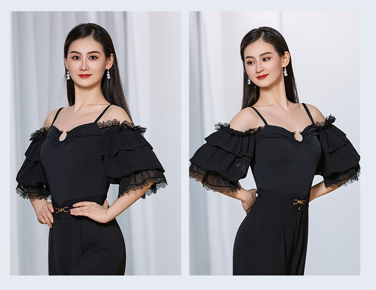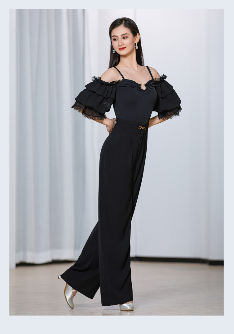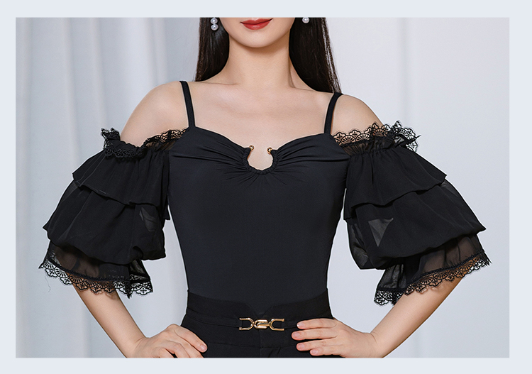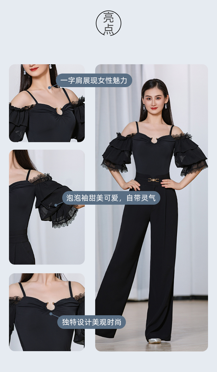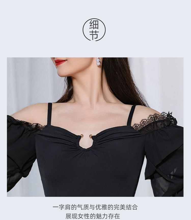 IAMYC摩登新款摩登舞服女成一字肩连体衣练功服上衣B10087