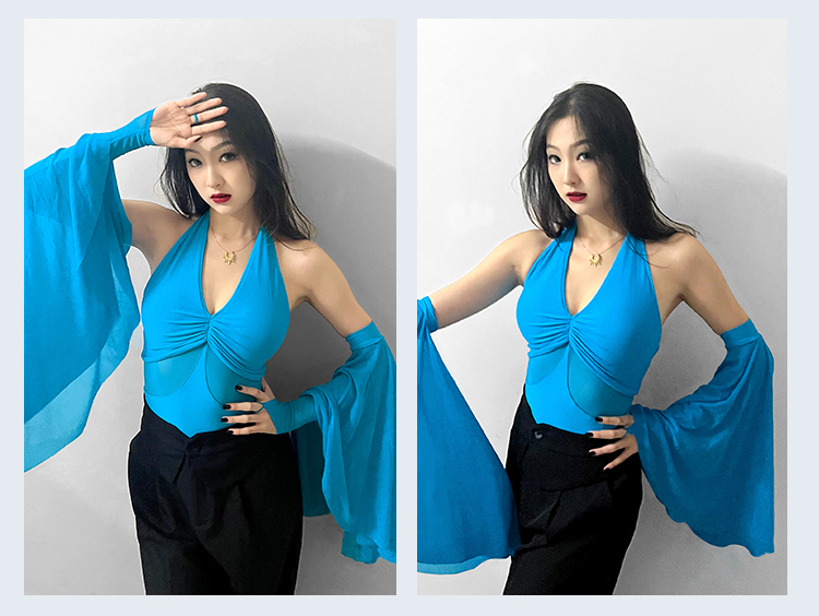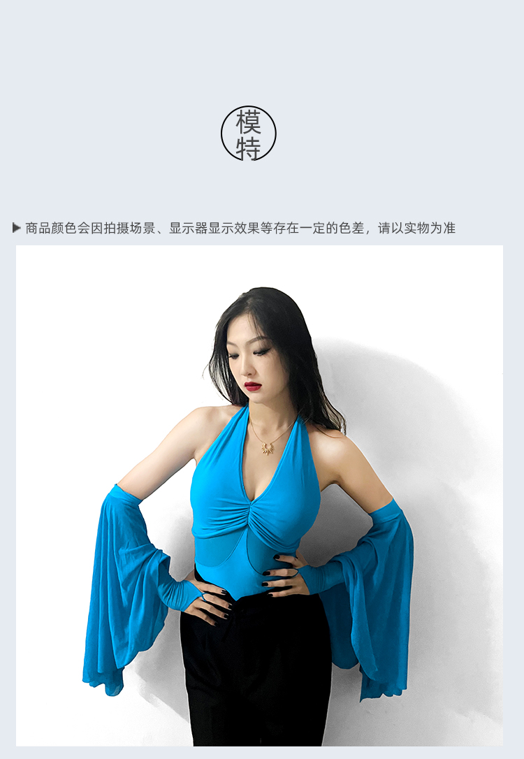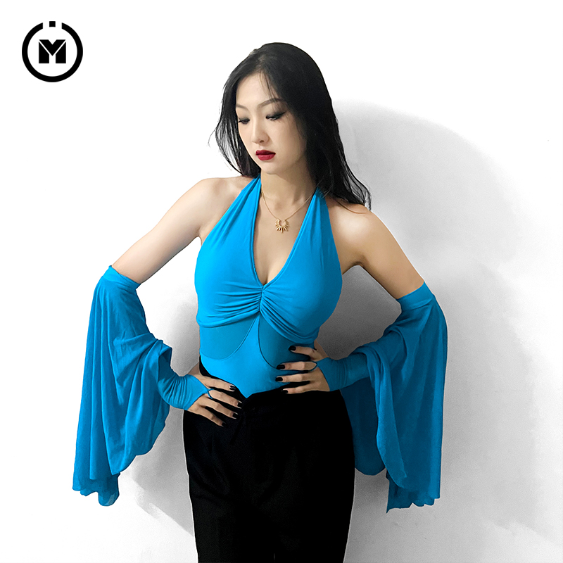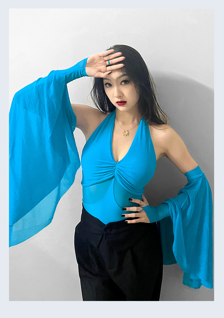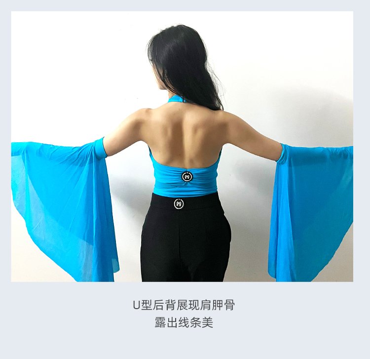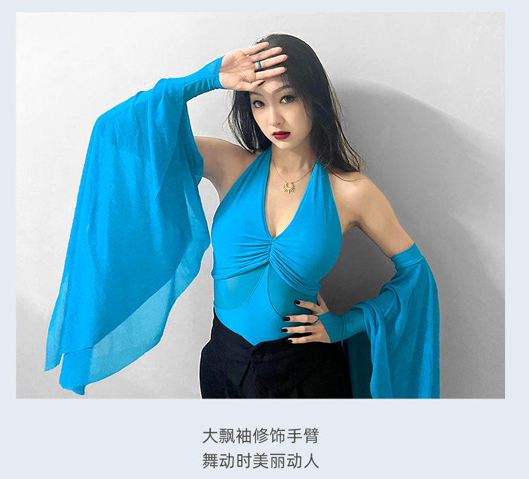 IAMYC摩登舞服上衣女新款夏季挂脖飘袖练功服国标舞上衣B10076