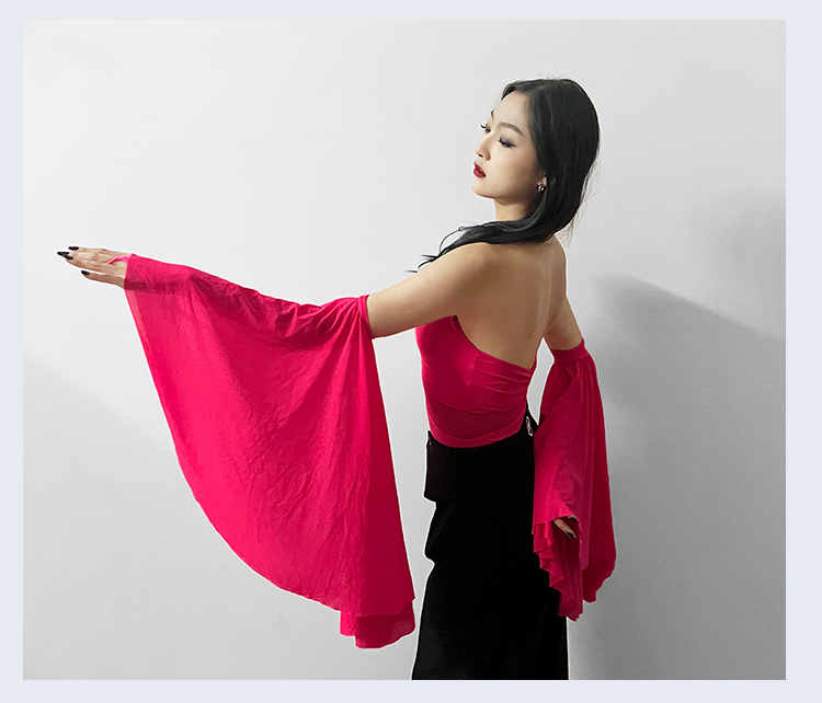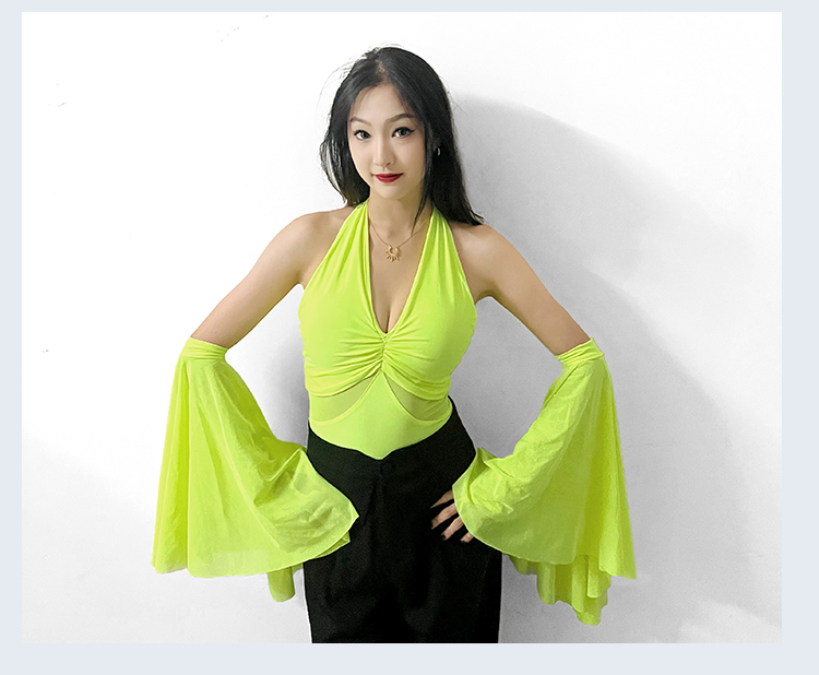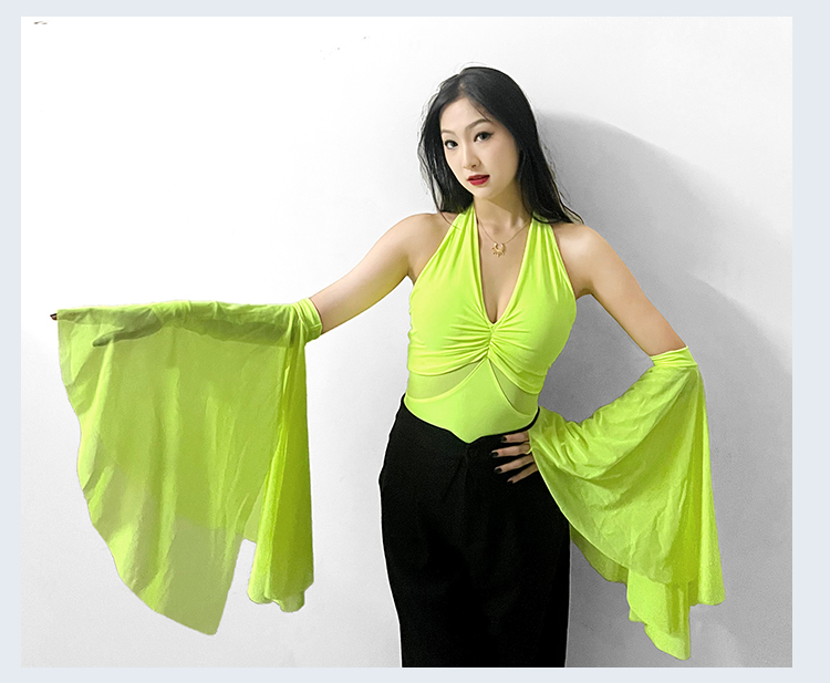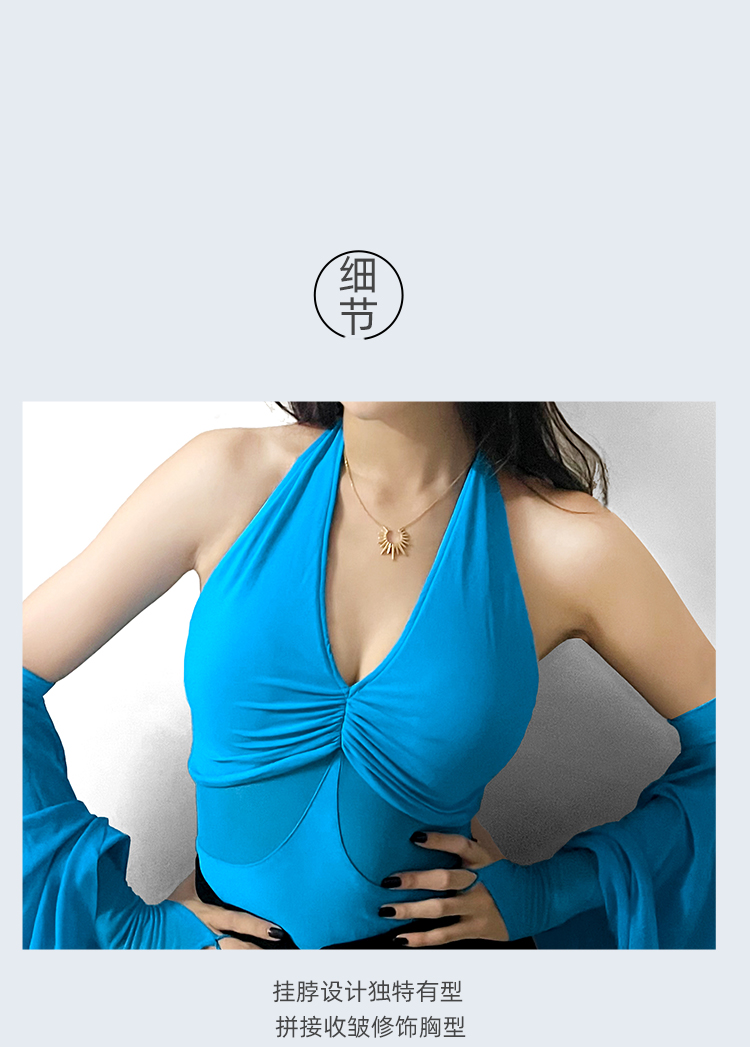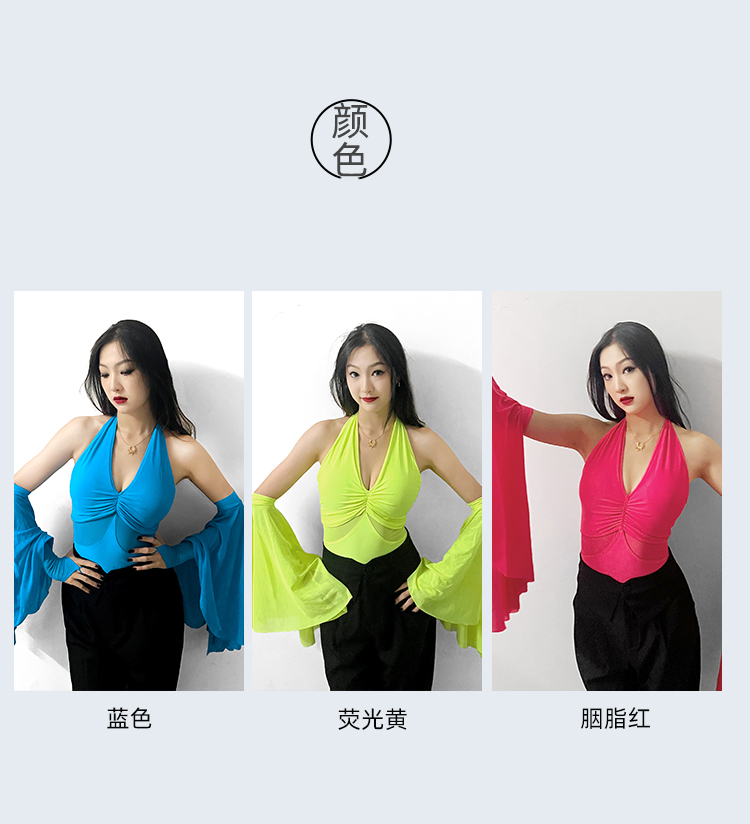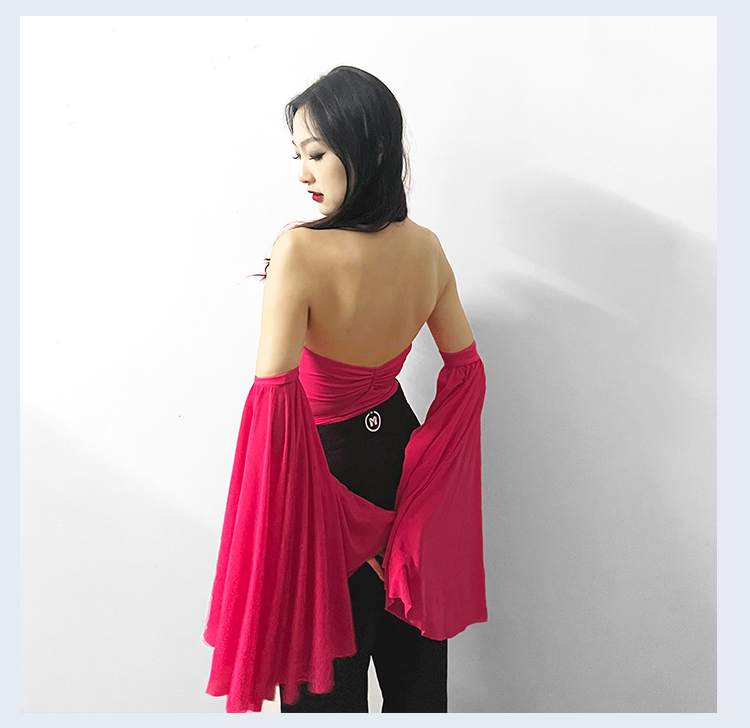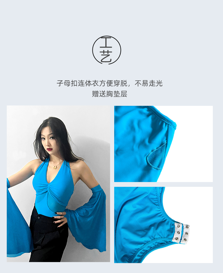 IAMYC摩登舞服上衣女新款夏季挂脖飘袖练功服国标舞上衣B10076