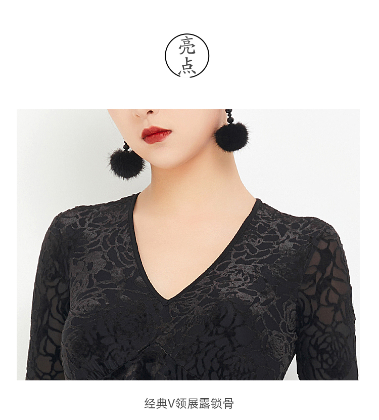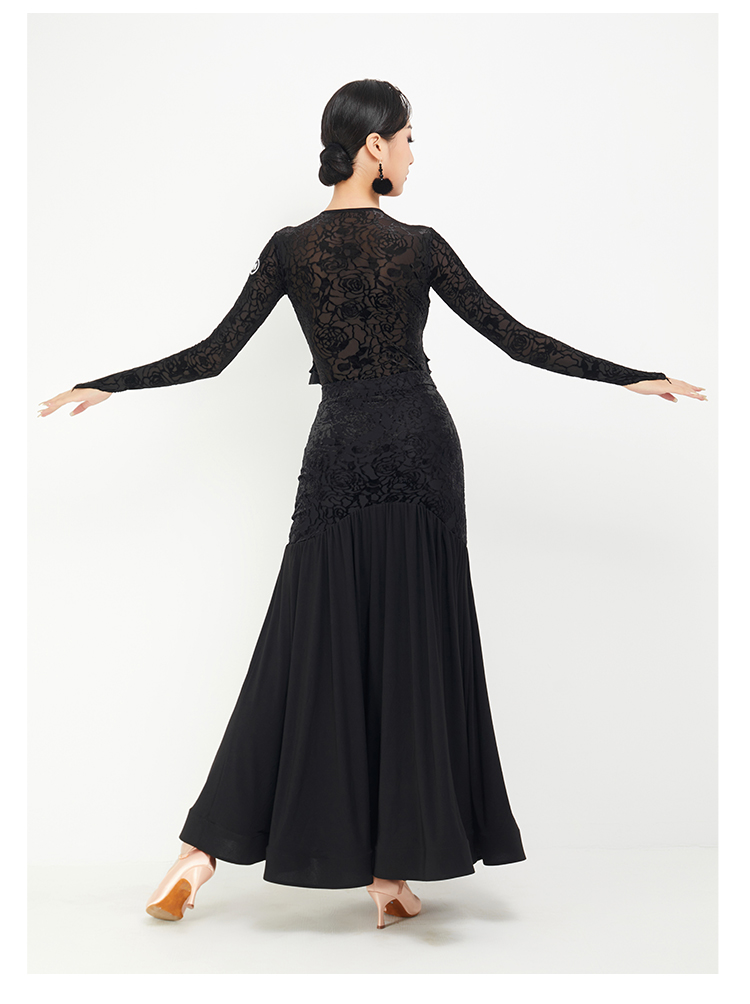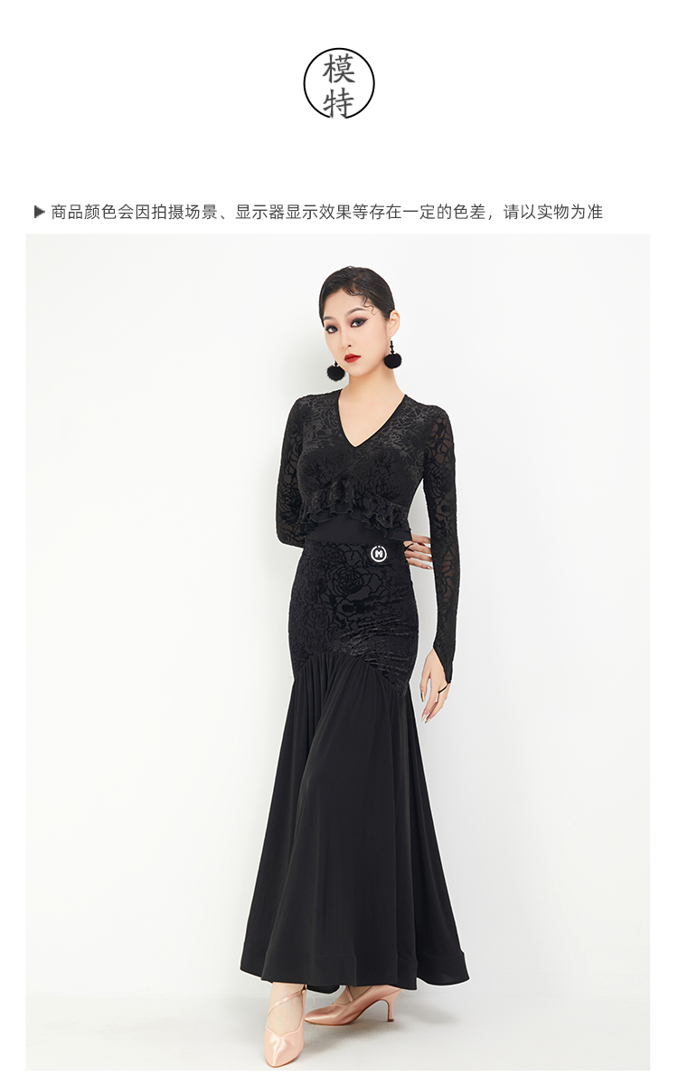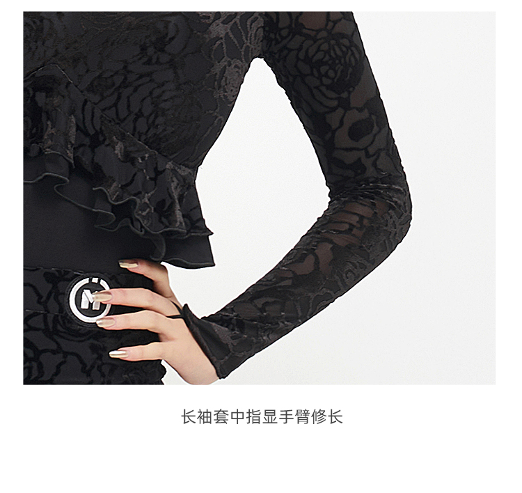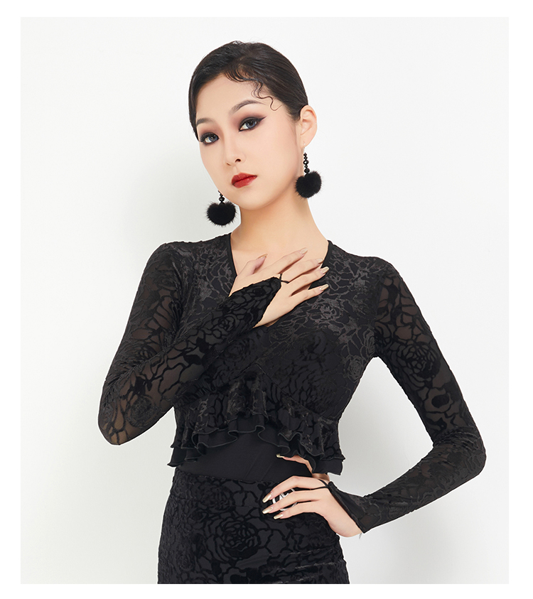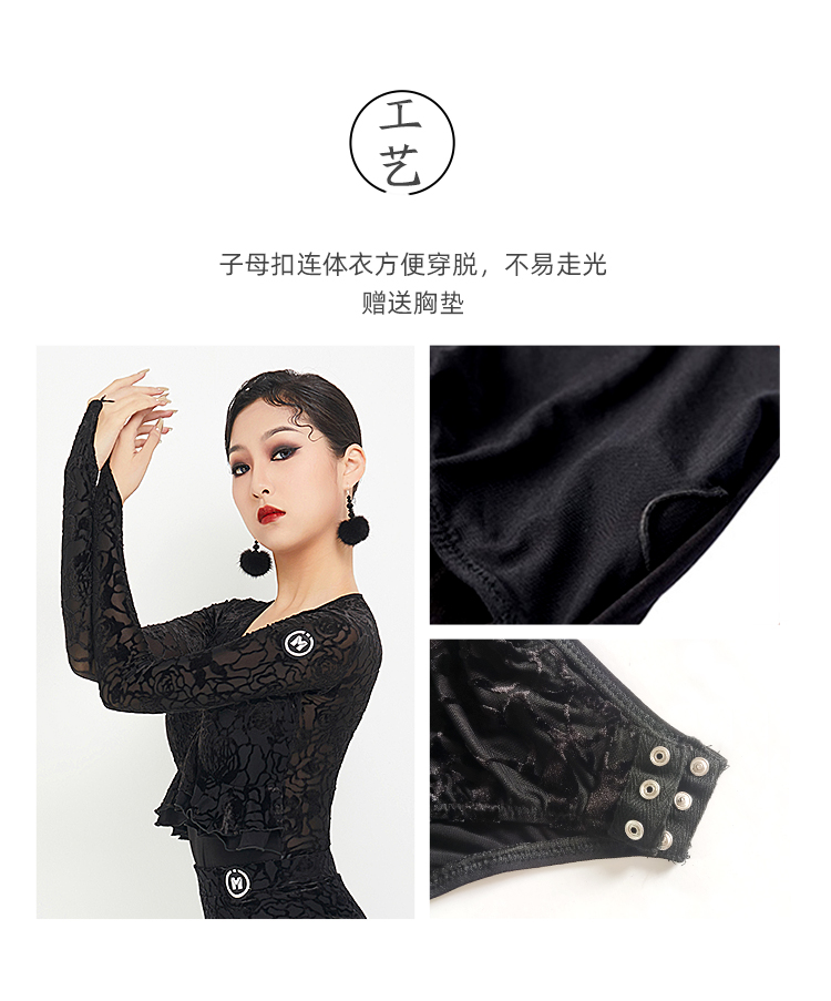 IAMYC摩登舞服长袖上衣女V领舞服国标舞专业练功服新款舞衣B10037