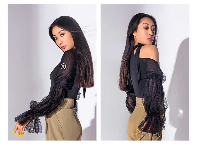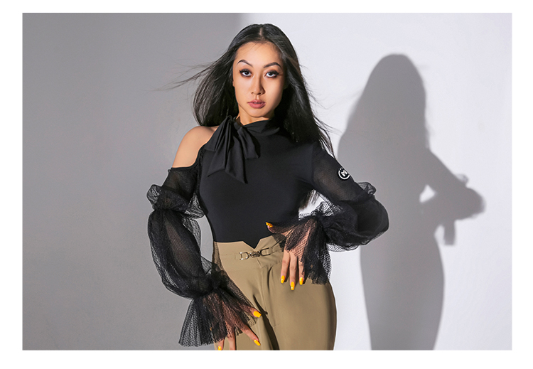 IAMYC摩登舞上衣女新款秋冬长袖练功服国标舞华尔兹连体衣B10006