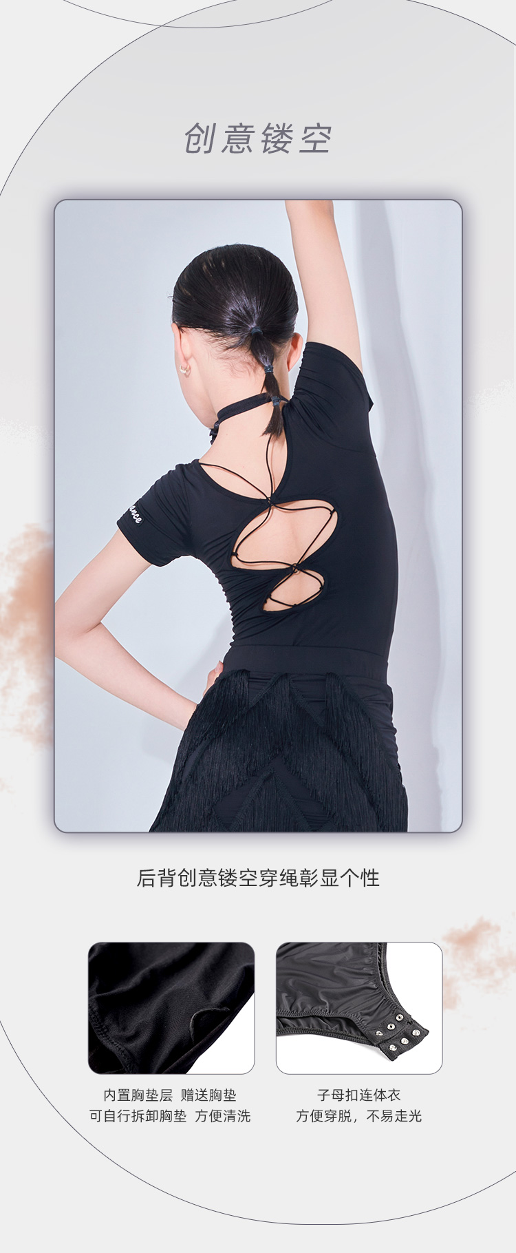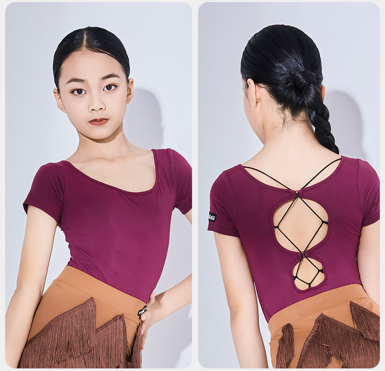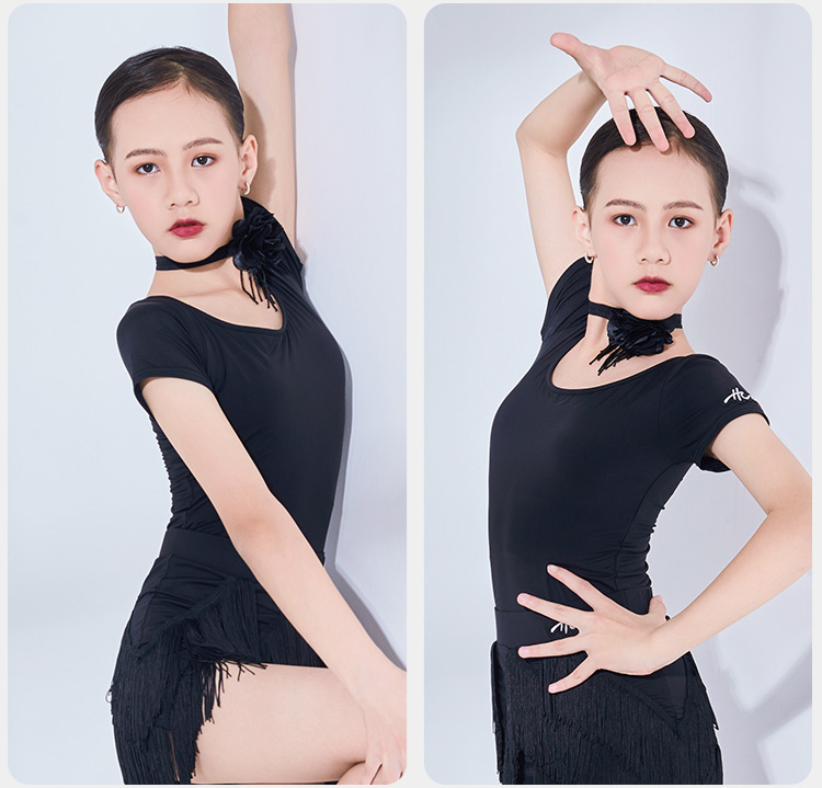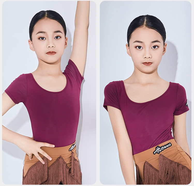 皇朝舞蹈儿童拉丁舞服舞蹈练功服上衣女童训练服连体上衣H6313