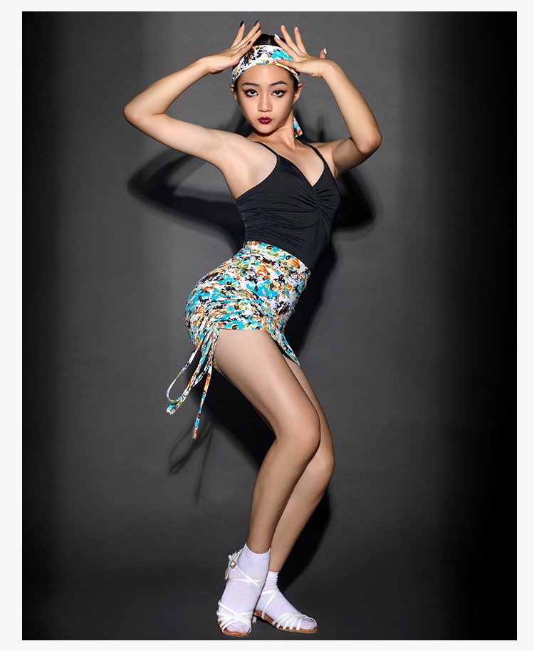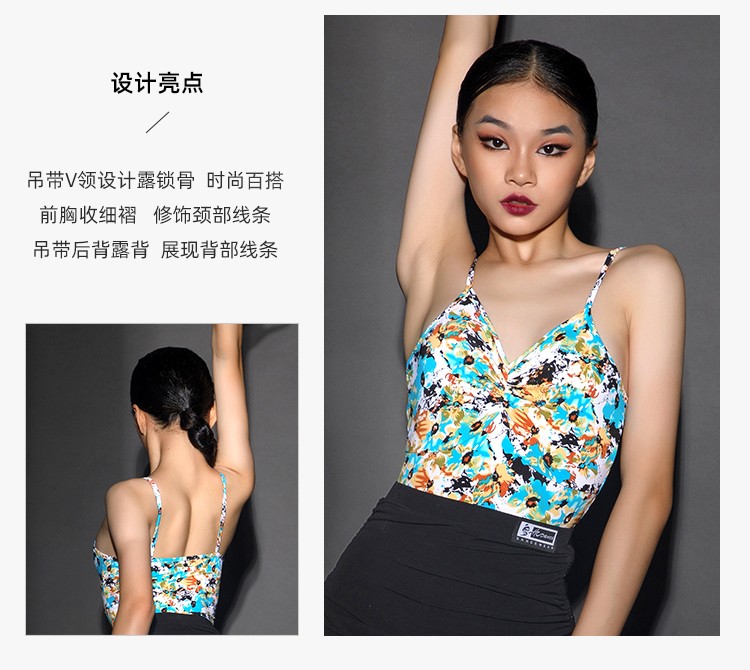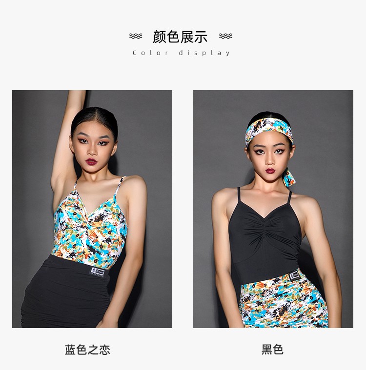 皇朝拉丁舞练功服女童吊带上衣2021新款儿童网红舞衣连体衣H6198