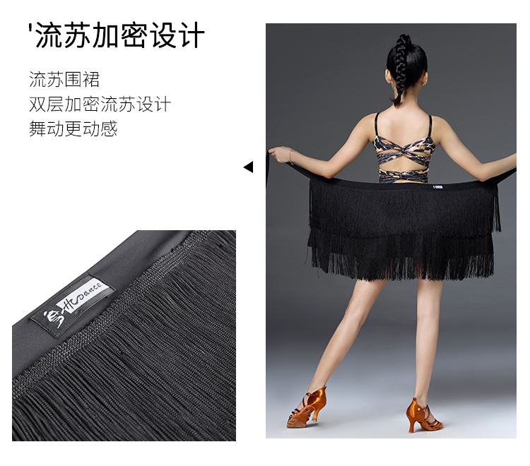 【品质与专业】皇朝拉丁性感舞服女童黑色拉丁舞流苏围裙 H7077