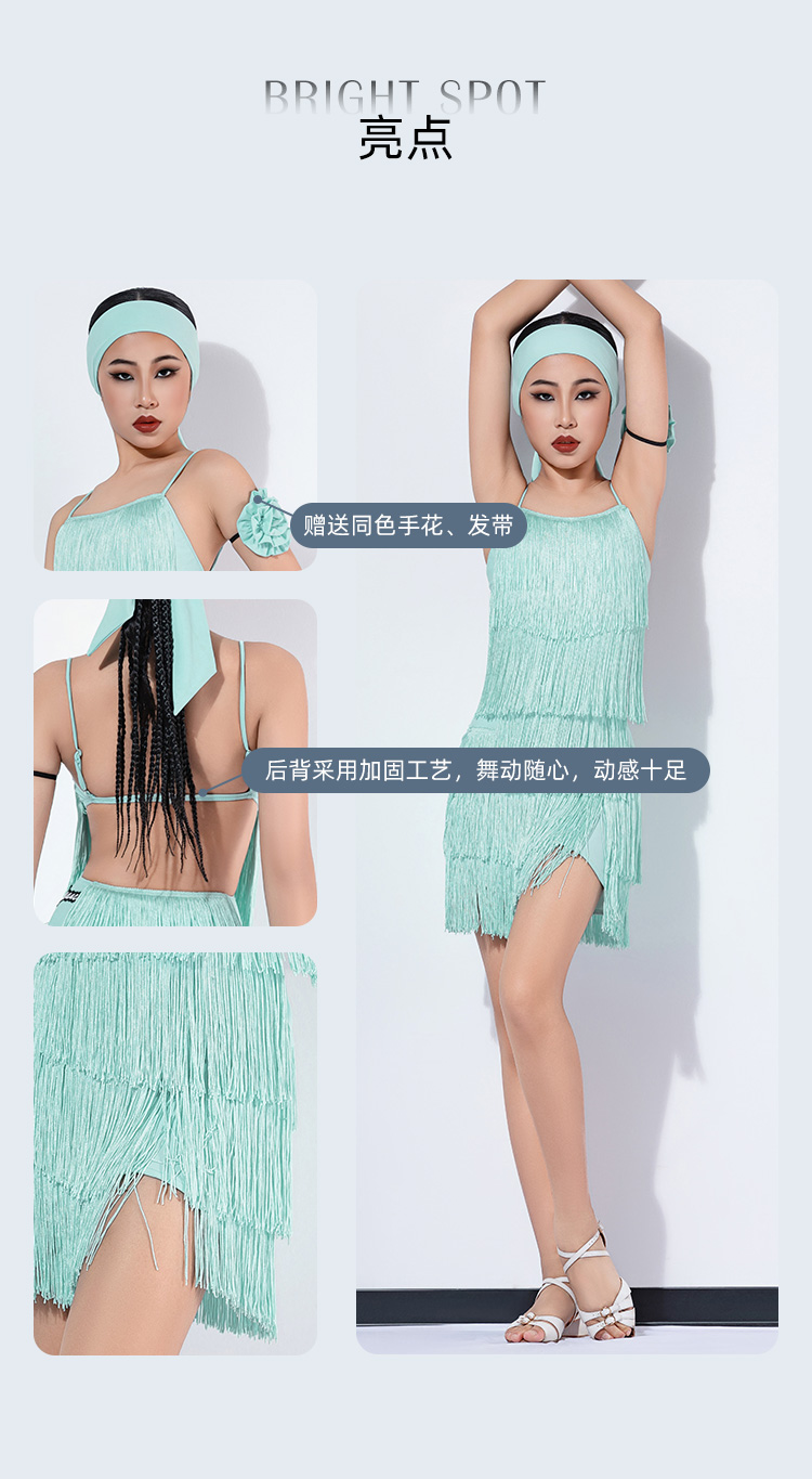 皇朝拉丁新款吊带露背拉丁舞连衣裙练功服流苏舞裙舞蹈服装 H9364
