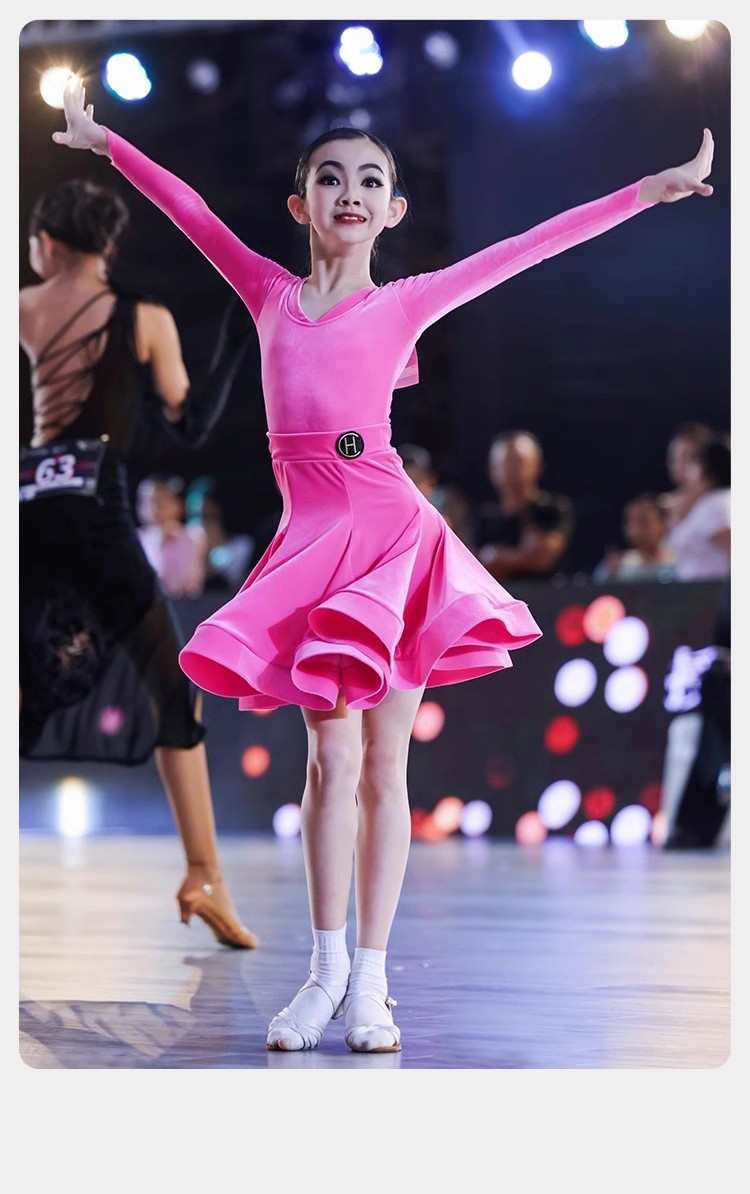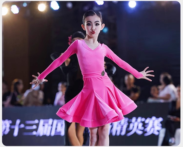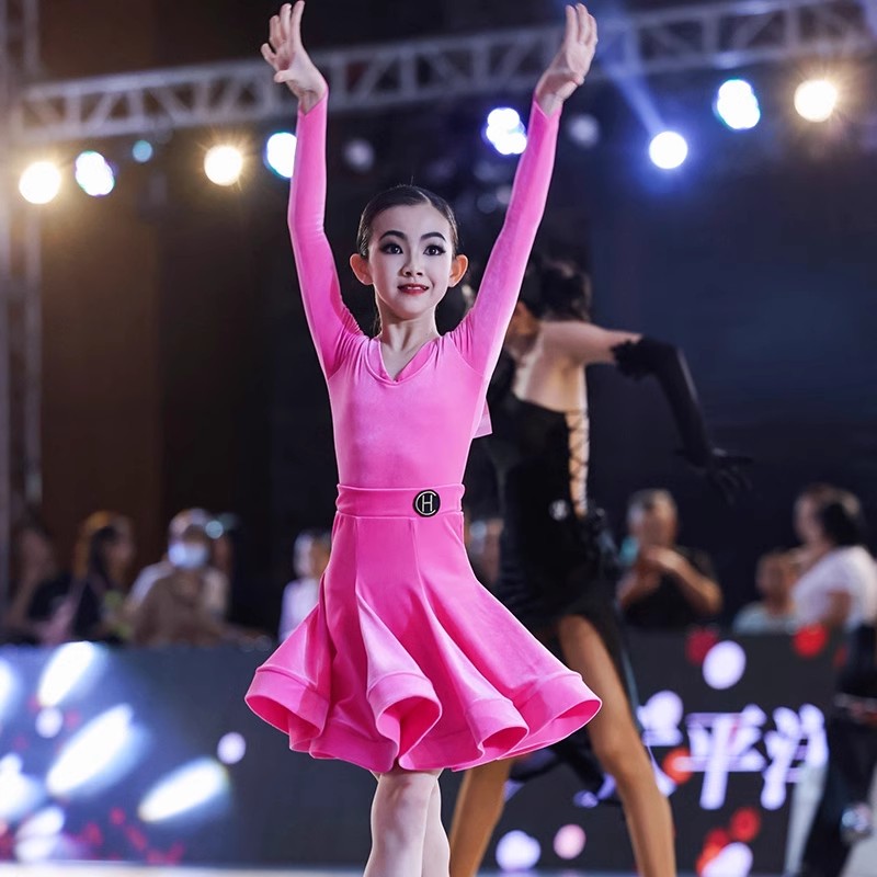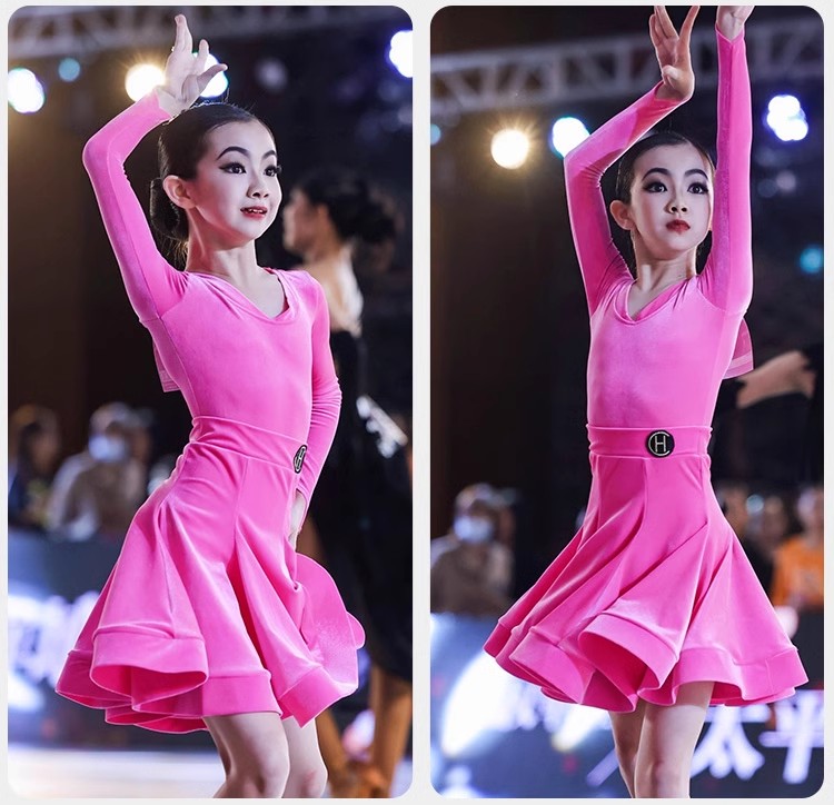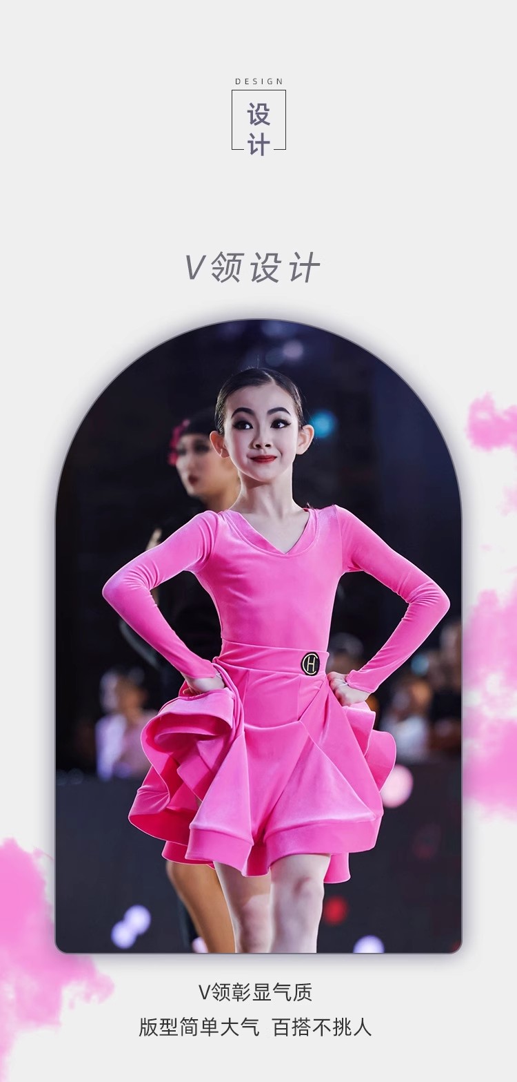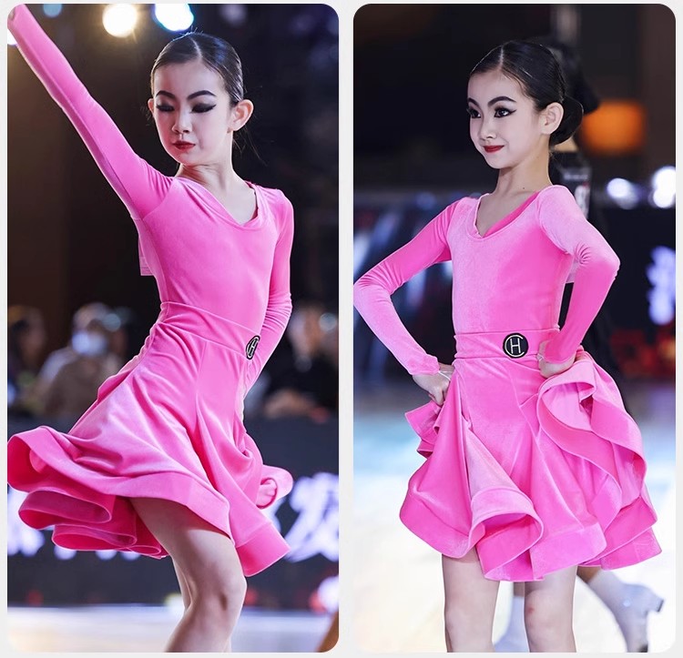 皇朝拉丁舞服少儿专业比赛规定服新款丝绒粉色套装HC6279+HC7137