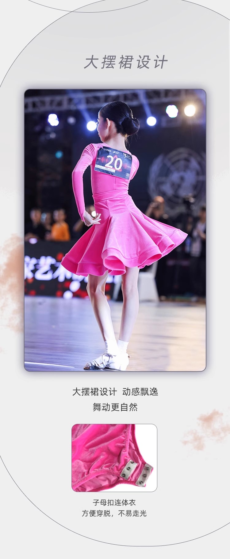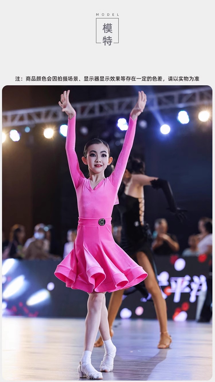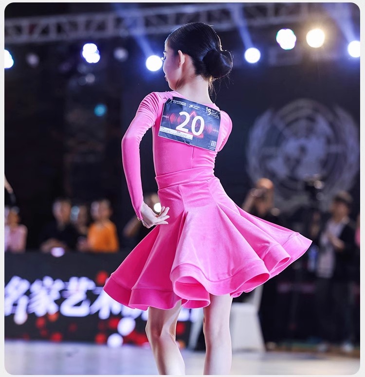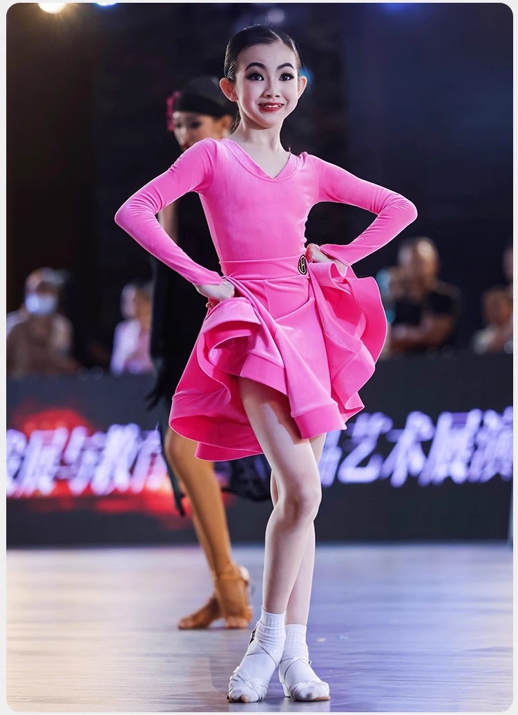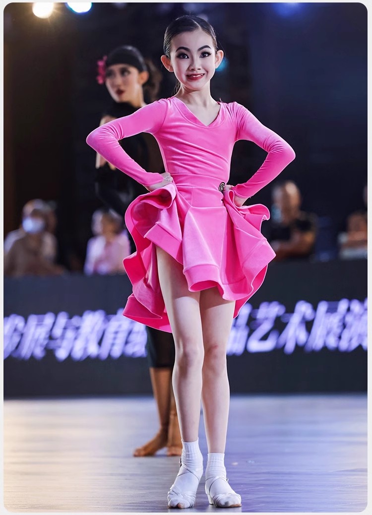 皇朝拉丁舞服少儿专业比赛规定服新款丝绒粉色套装HC6279+HC7137