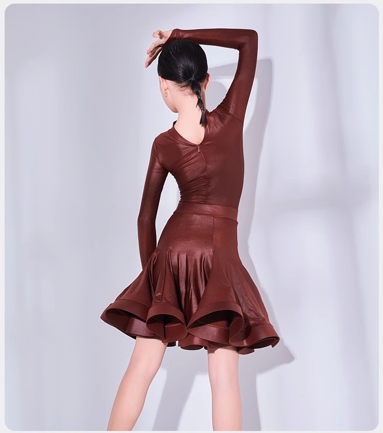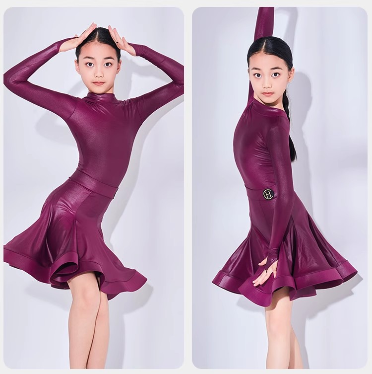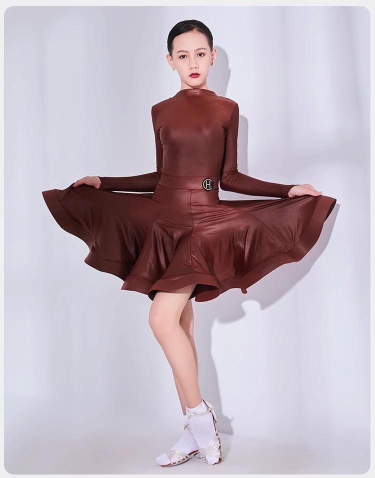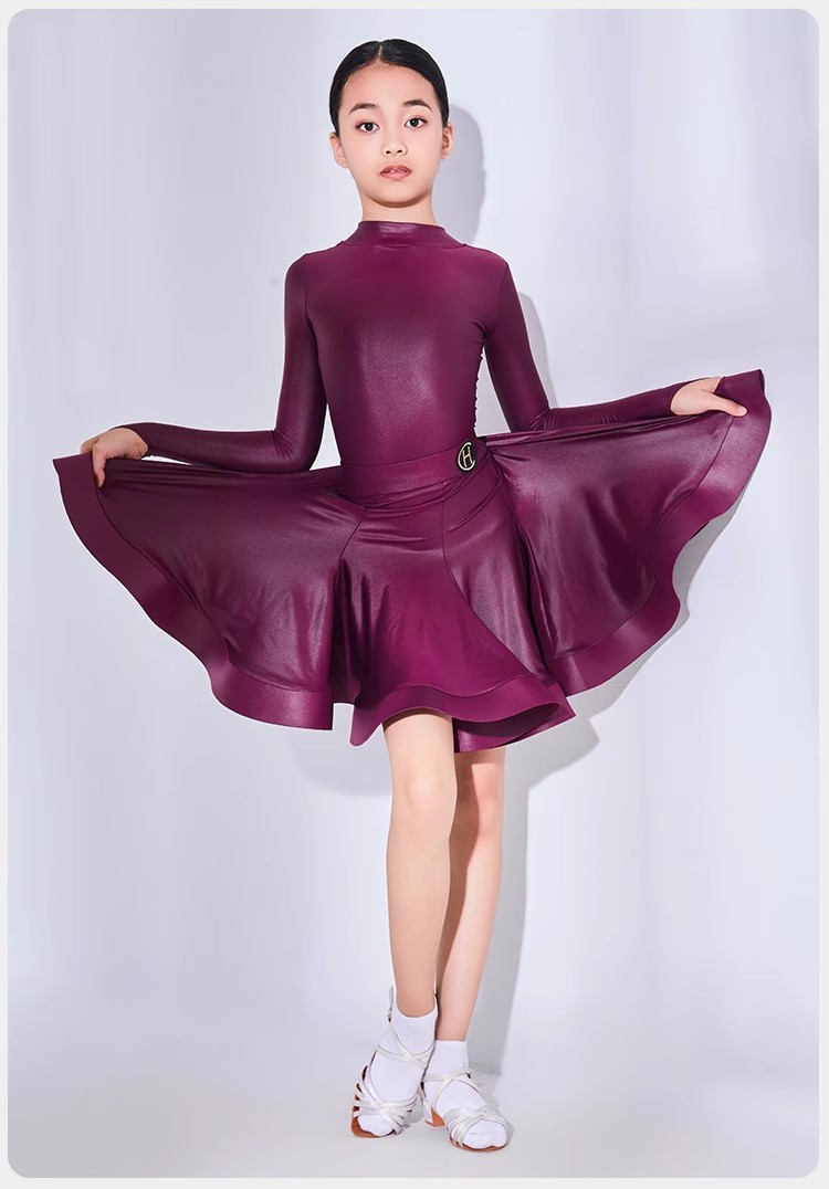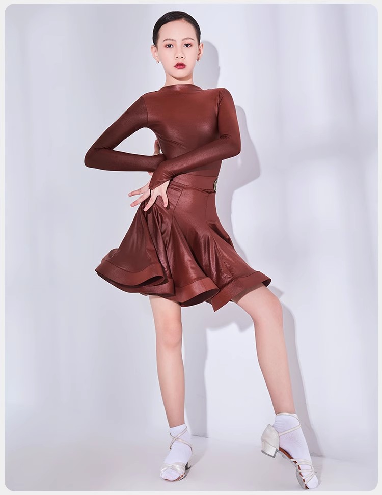 皇朝拉丁舞服专业比赛表演规定服女童新款仿皮套装HC6317+HC7137