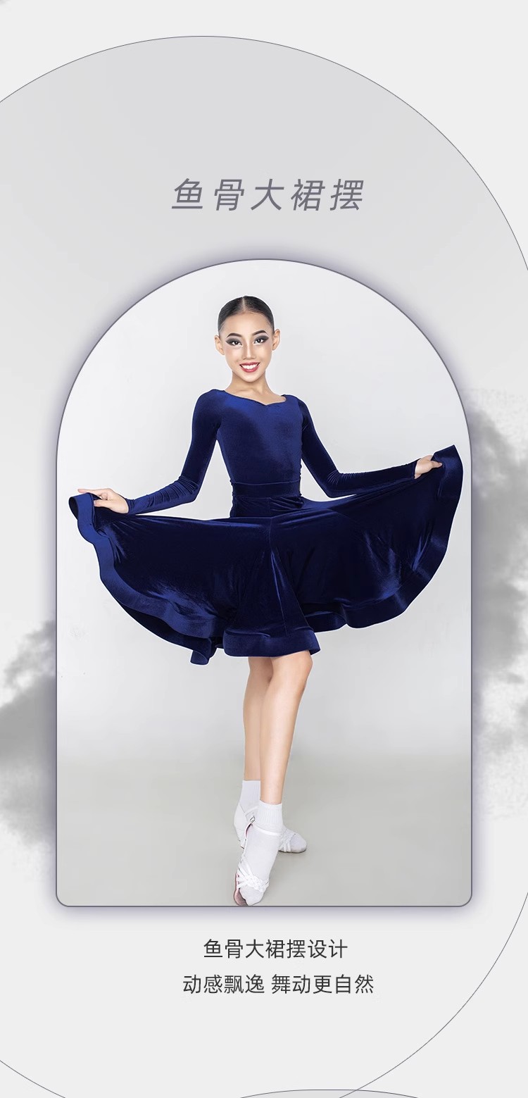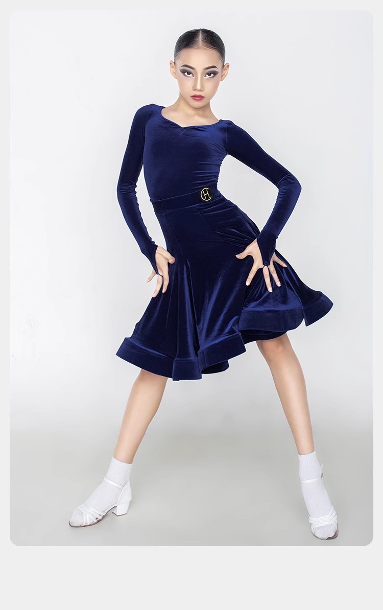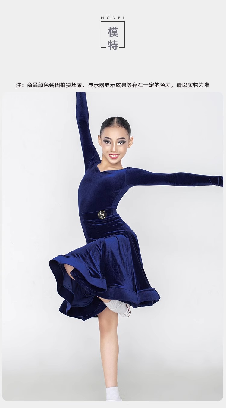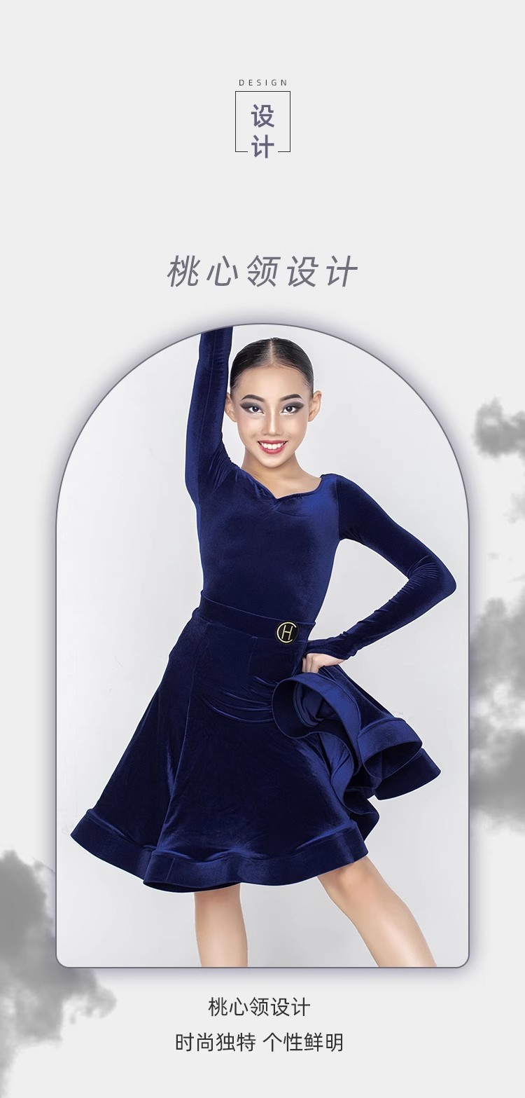 皇朝舞蹈拉丁舞服女童比赛服新款丝绒套装HC6234+HC7137