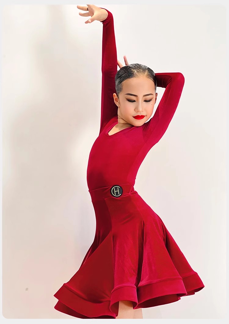 皇朝舞服新款拉丁舞服女童专业比赛规定服丝绒套装HC6279+HC7137