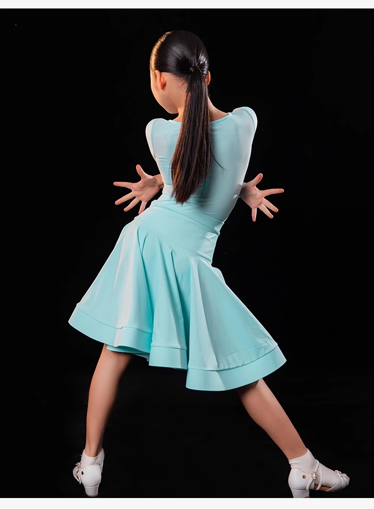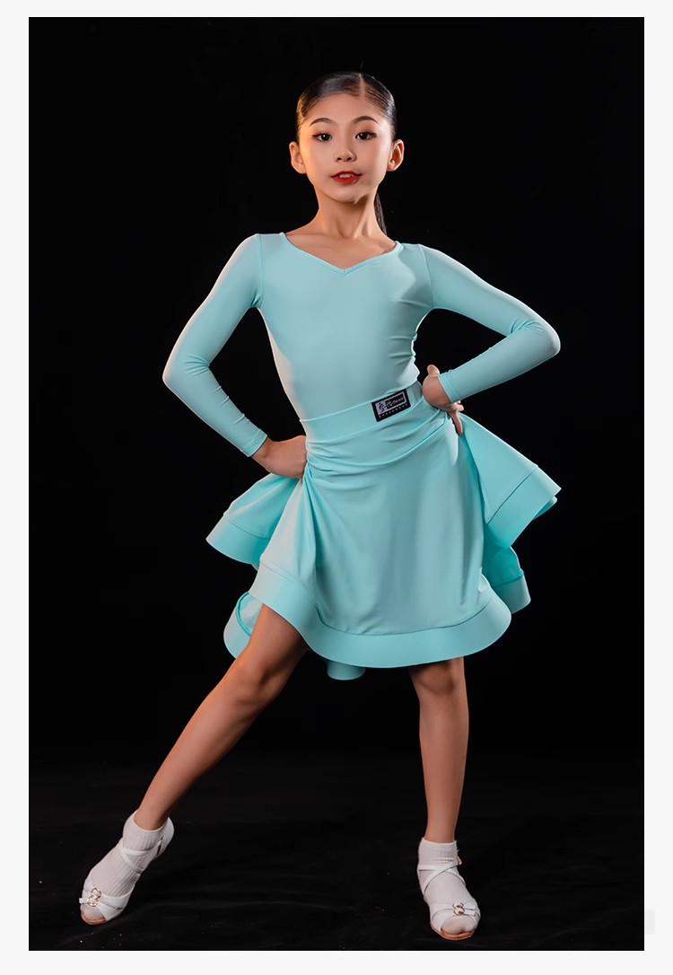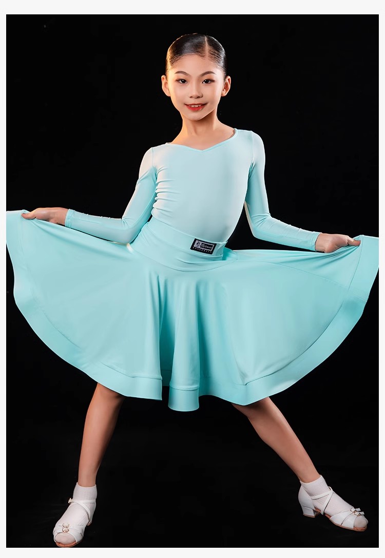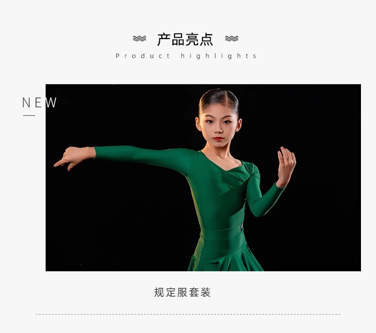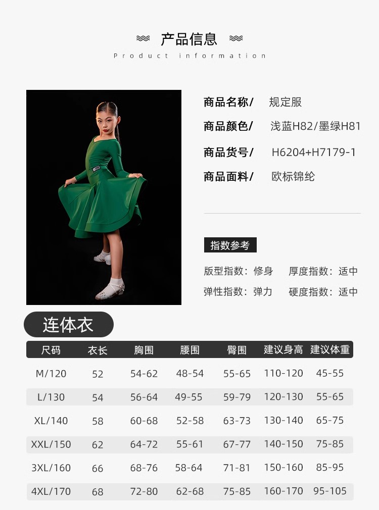 皇朝拉丁舞比赛服女童标准规定服桃心领鱼骨分体套装H6204+H7179