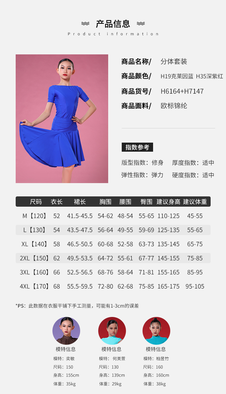 皇朝拉丁舞服装比赛规定服女童艺考大摆裙演出服套装H6164+H7147