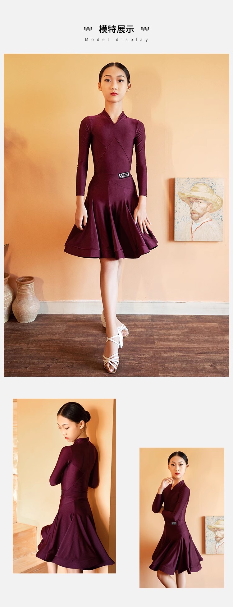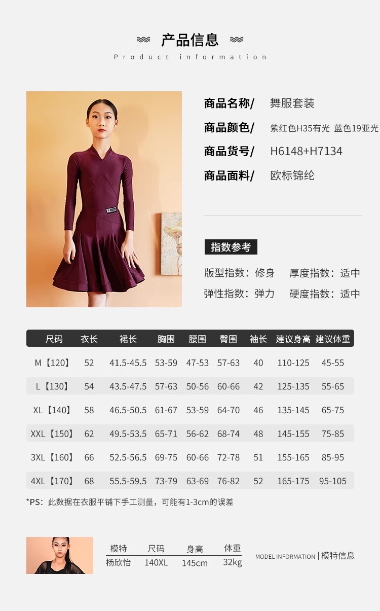 皇朝拉丁舞服少儿标准规定服练功服黑池比赛服演出服H6148+H7134