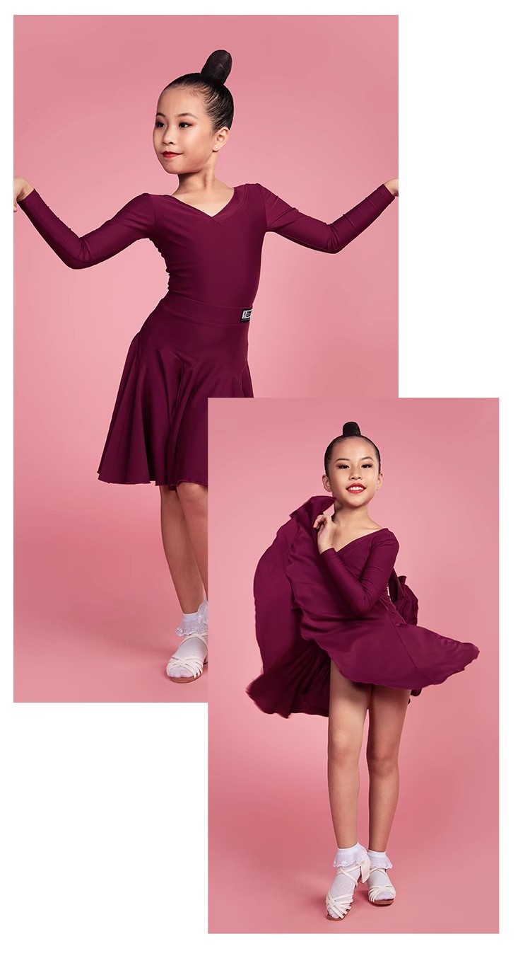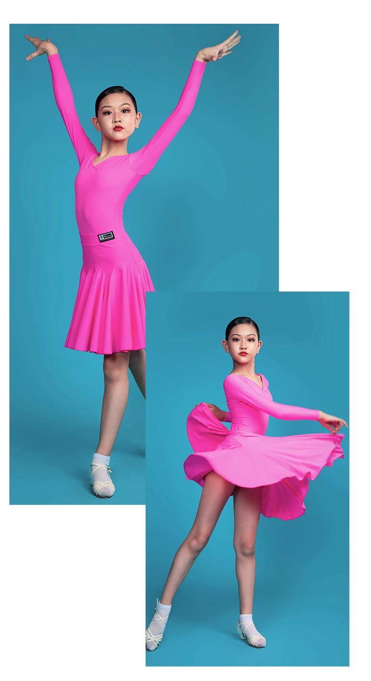 皇朝拉丁舞服装女儿童拉丁舞裙练功服女童舞蹈比赛考级规定服套装 H6144+H7125