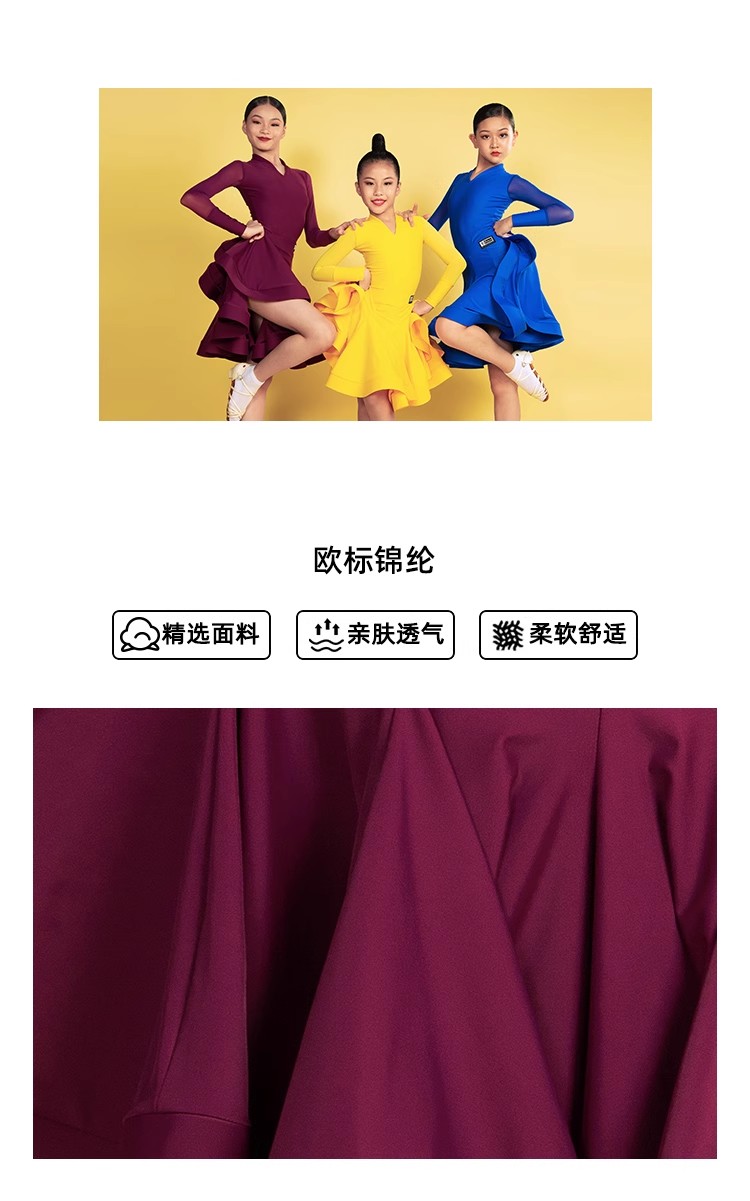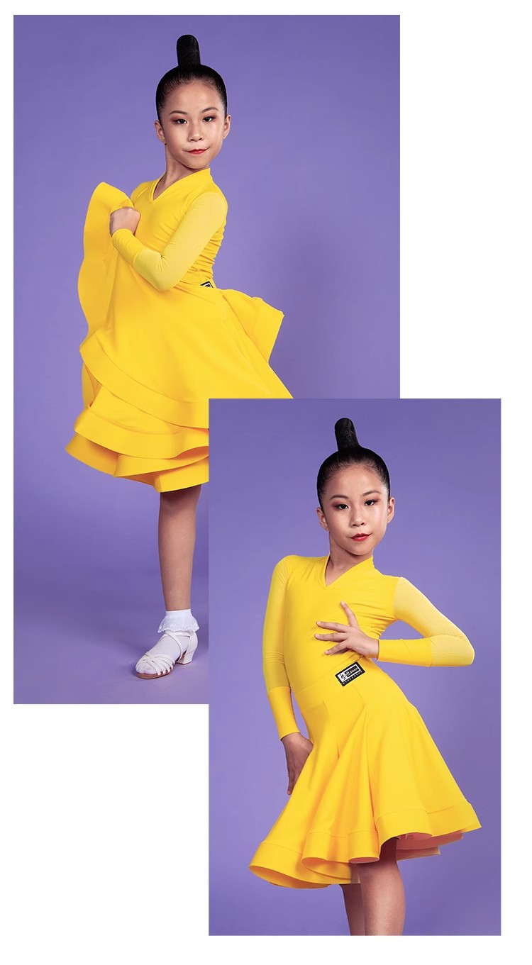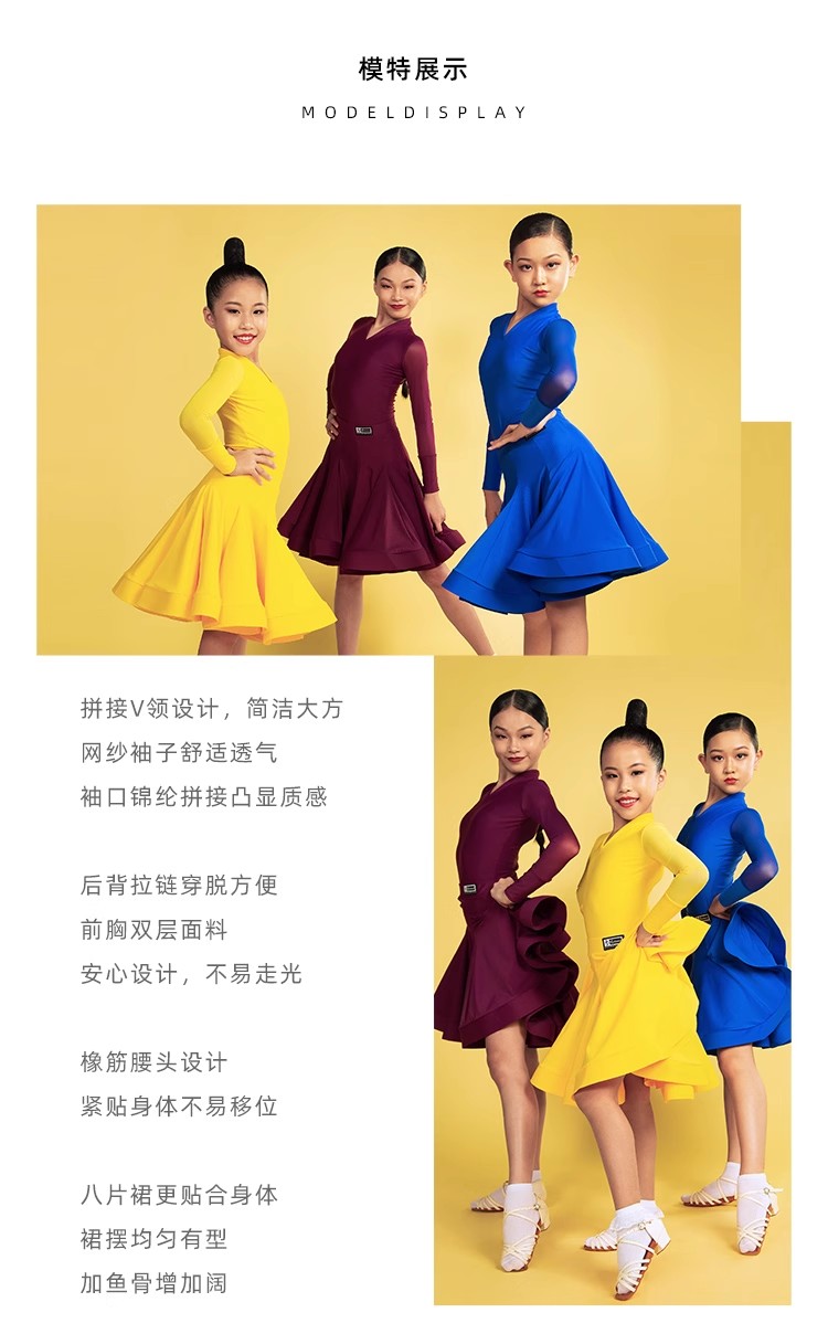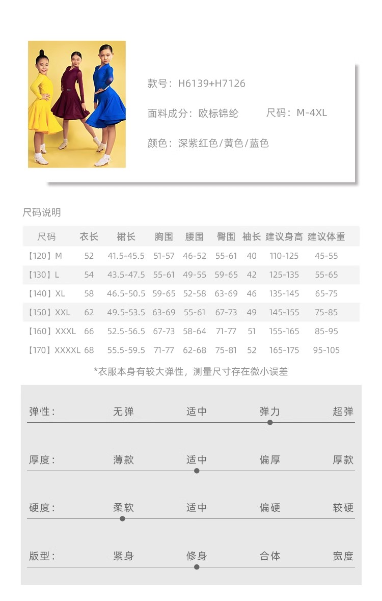 皇朝拉丁舞裙女儿童表演规定服黑池大摆专业练功服舞蹈演出服套装H6139+H7126
