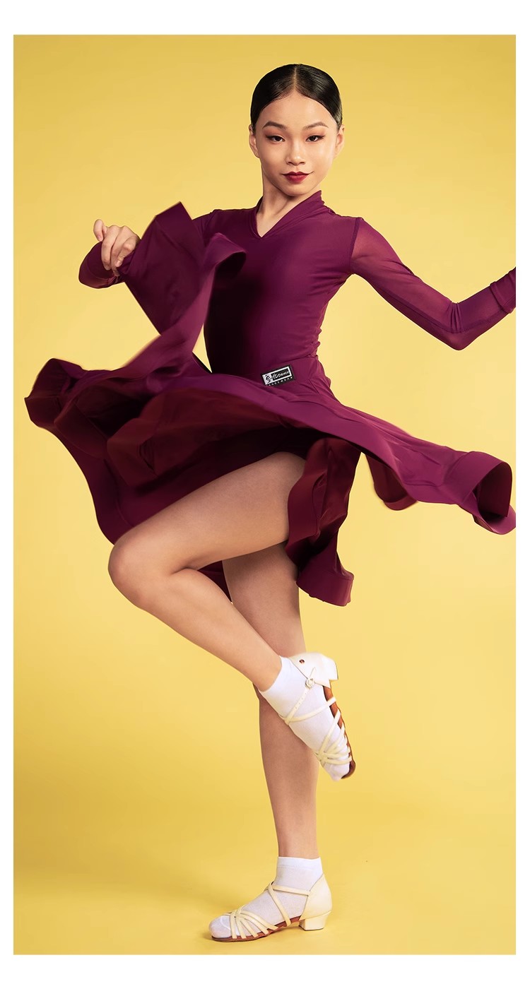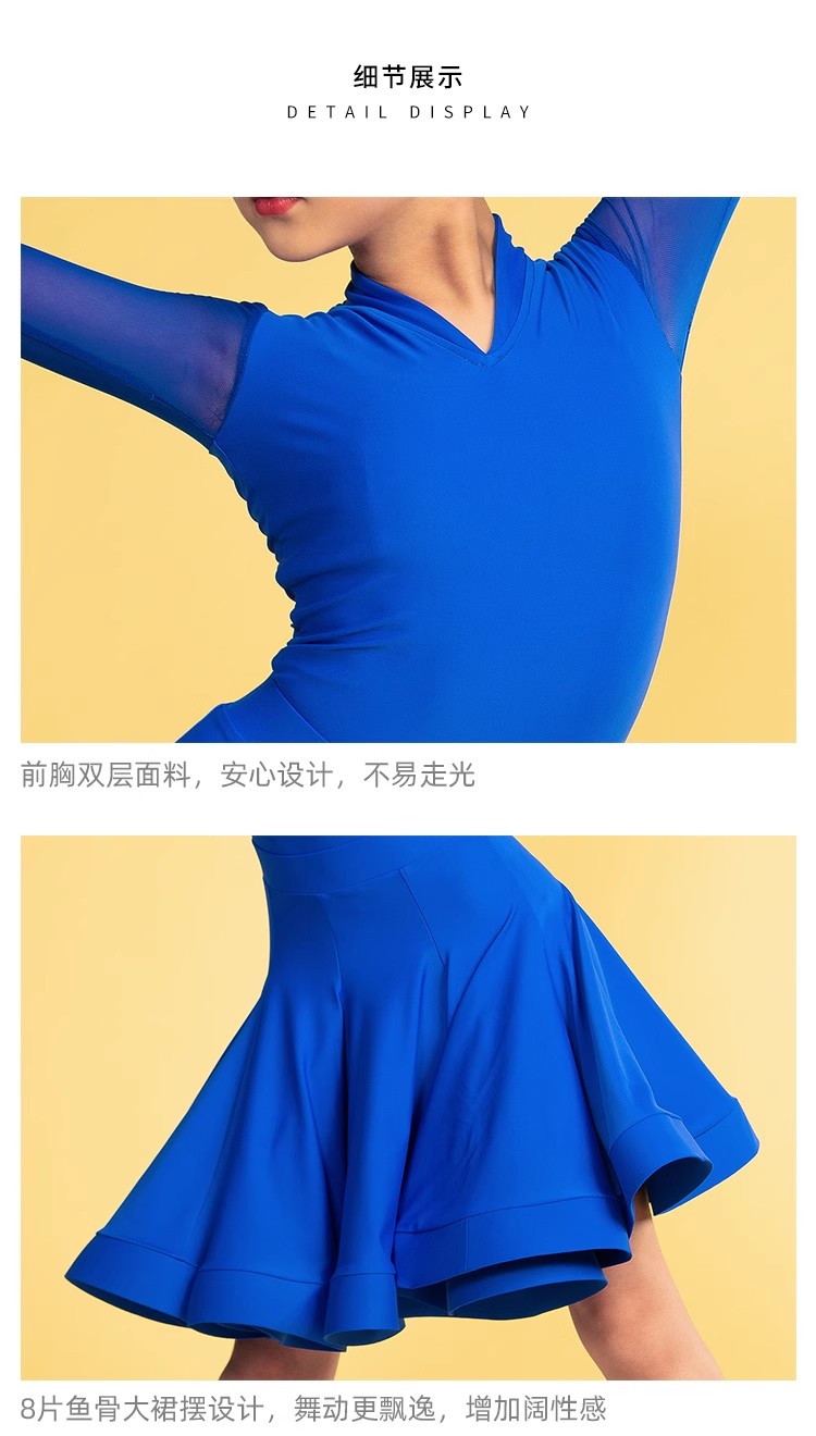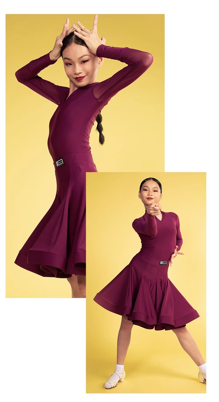 皇朝拉丁舞裙女儿童表演规定服黑池大摆专业练功服舞蹈演出服套装H6139+H7126