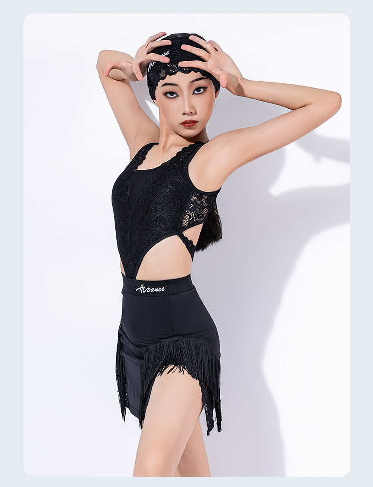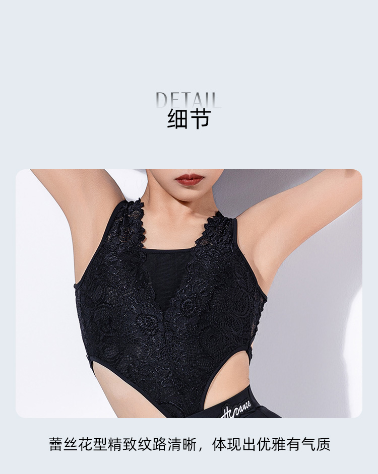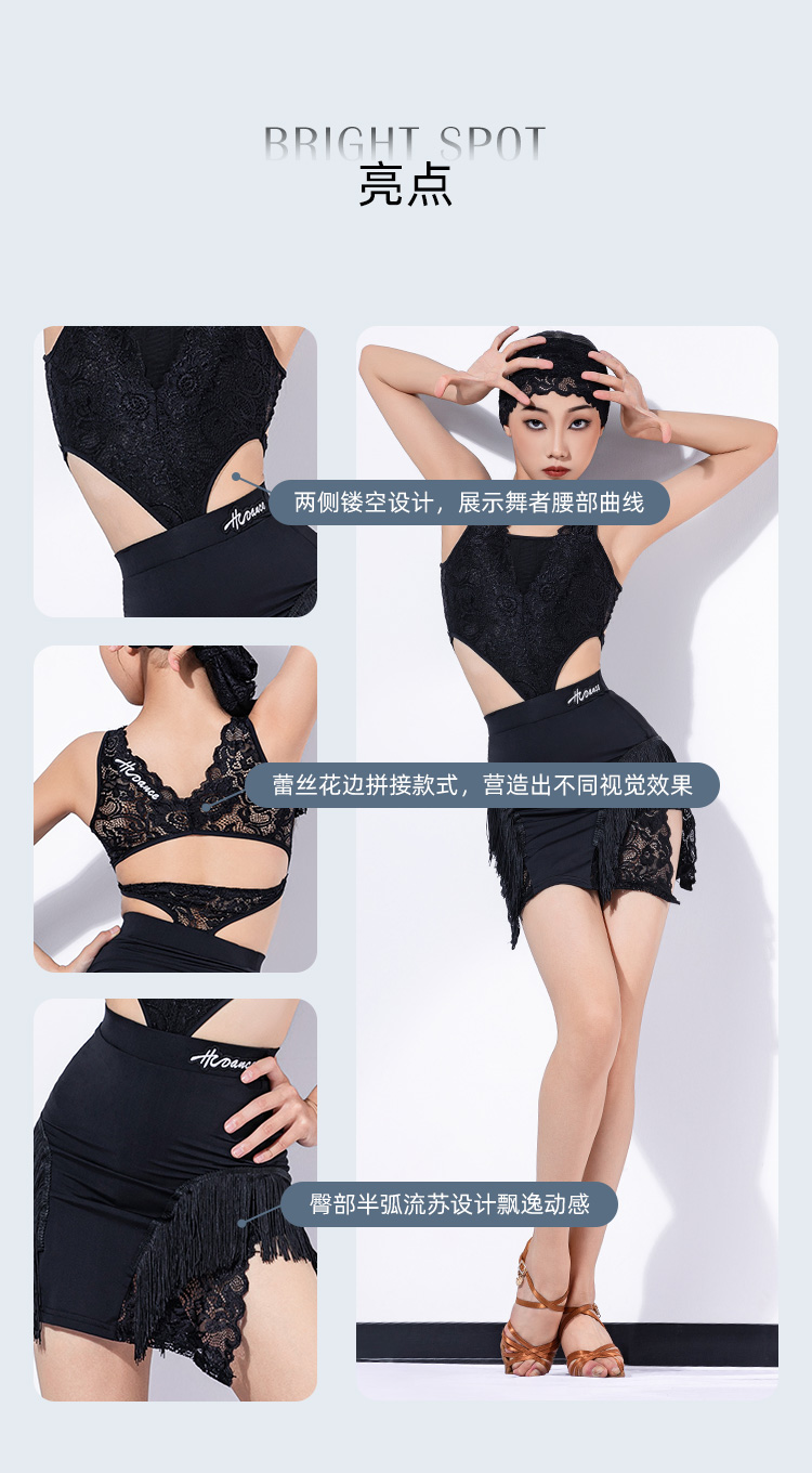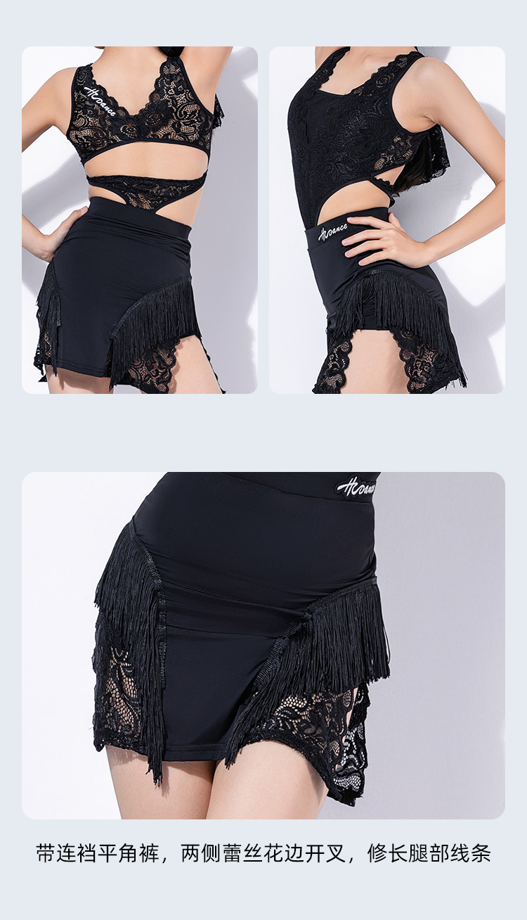 皇朝拉丁舞服弹力蕾丝花边镂空连体衣套装H6384+H7300