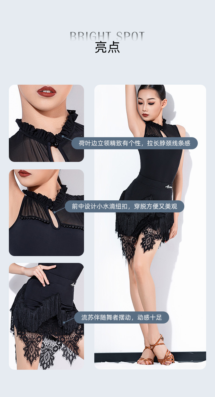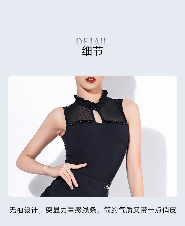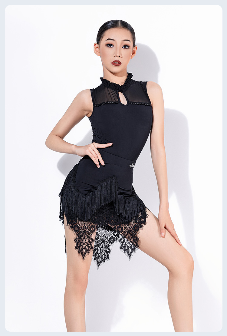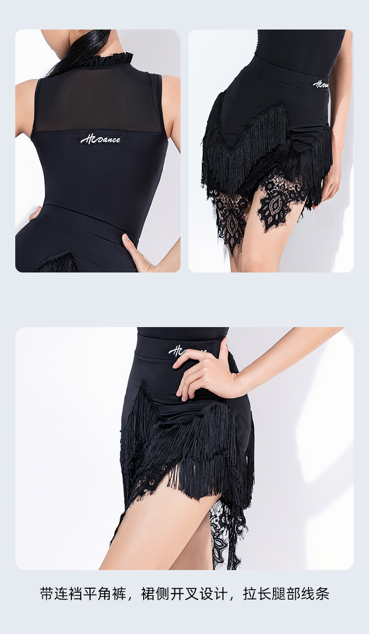 皇朝拉丁舞服无袖荷叶边流苏儿童分体套装练功服H6324+H7257